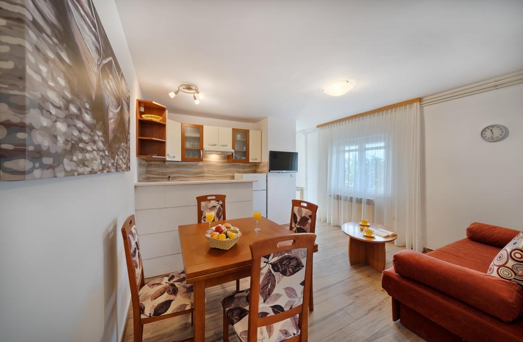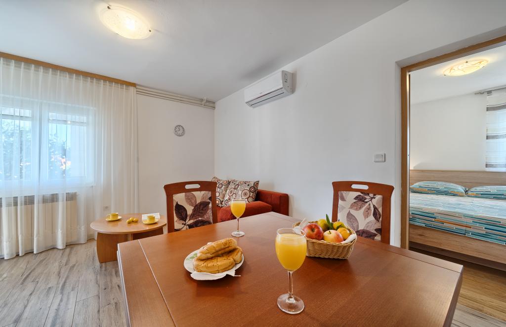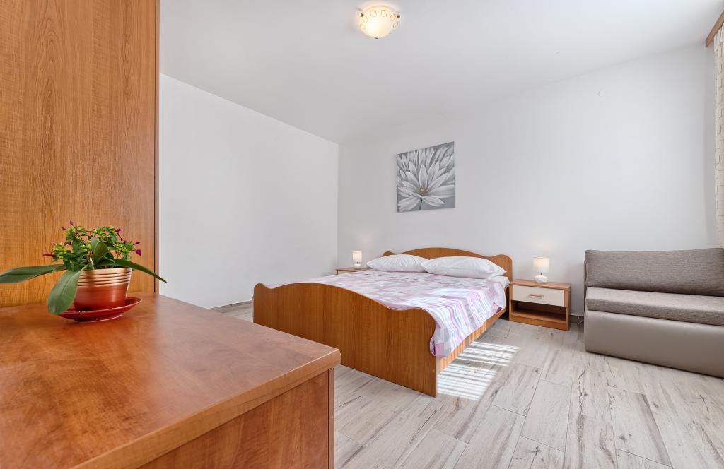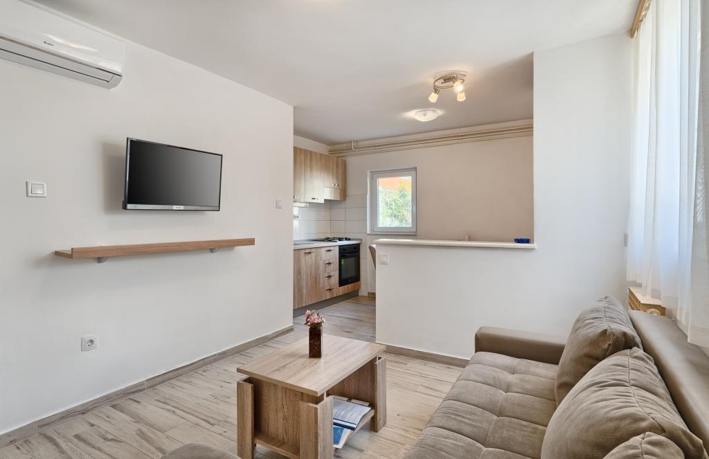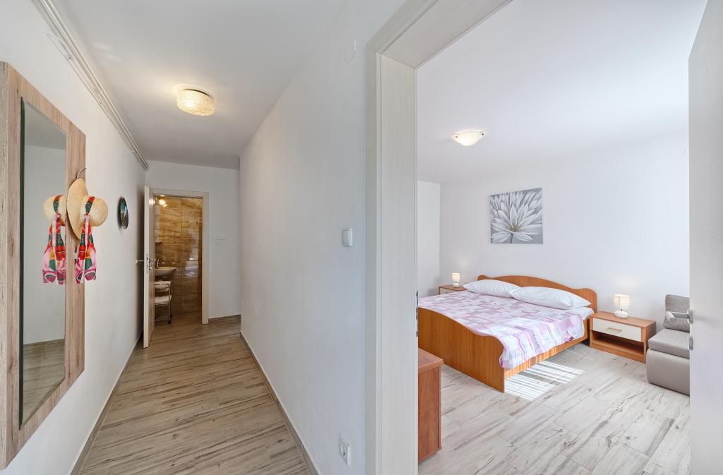Apartamenty Bareta znajdują się na wyspie Ciovo, gmina Trogir. Znajdują się w doskonałej lokalizacji dla tych, którzy chcą cieszyć się słońcem i morzem, a także dla tych, którzy chcą poznać historyczne i naturalne piękno Środkowej Dalmacji. Stare Miasto UNESCO w Trogirze znajduje się zaledwie 1000 metrów od hotelu, a Split (Pałac Dioklecjana, promy na wyspy), Omiš, Cetina (rafting, kanioning, wspinaczka), wodospady Krka i Szybenik znajdują się w odległości 50 km. Lotnisko w Splicie znajduje się zaledwie 5 km od hotelu. Apartamenty znajdują się na parterze rodzinnego domu otoczonego ogrodem i zielenią. Każdy apartament ma własne wejście i możliwy jest duży taras ze stołem, parking, grill i prysznic na świeżym powietrzu. Apartamenty składają się z salonu połączonego z kuchnią, sypialni (łóżko 2 1, 2 2), ewentualnie dwóch dorosłych z dwójką dzieci, łazienki z toaletą. Apartamenty są w pełni wyposażone we wszystko, czego potrzeba do komfortowego pobytu / naczynia, pościel itp.) Tr