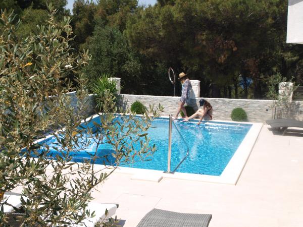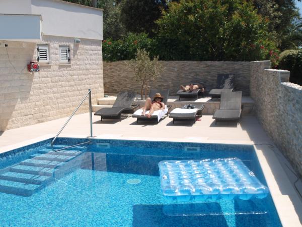Apartamenty Marko znajduje się w spokojnej części wyspy Ciovo, w Okrug Donji w pobliżu Trogiru, który jest pod ochroną UNESCO. Apartamenty położone są 100m Marko od plaży, która może być osiągnięta na drodze przez piękny sosnowy las i zielonych roślin śródziemnomorskich. Każdy apartament jest w pełni wyposażony i nowoczesny telewizor / h Klimatyzacja, Internet, 2 klimatyzatory, 2 łazienki, salon, kuchnia, parking i taras z widokiem na centrum more.Pored został zbudowany basen z 34 m2. Trogir znajduje się w pobliżu, które daje możliwość skorzystania 4000 lat historii i cieszyć się życiem nocnym. Goście mogą być organizowane przez agencje wypożyczyć łodzie, skutery i wycieczki do sąsiednich wysp. Lotnisko znajduje się 10 km od apartamentu. Lotnisko jest dogodnie można wynająć prywatny pojazd.