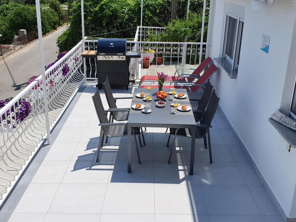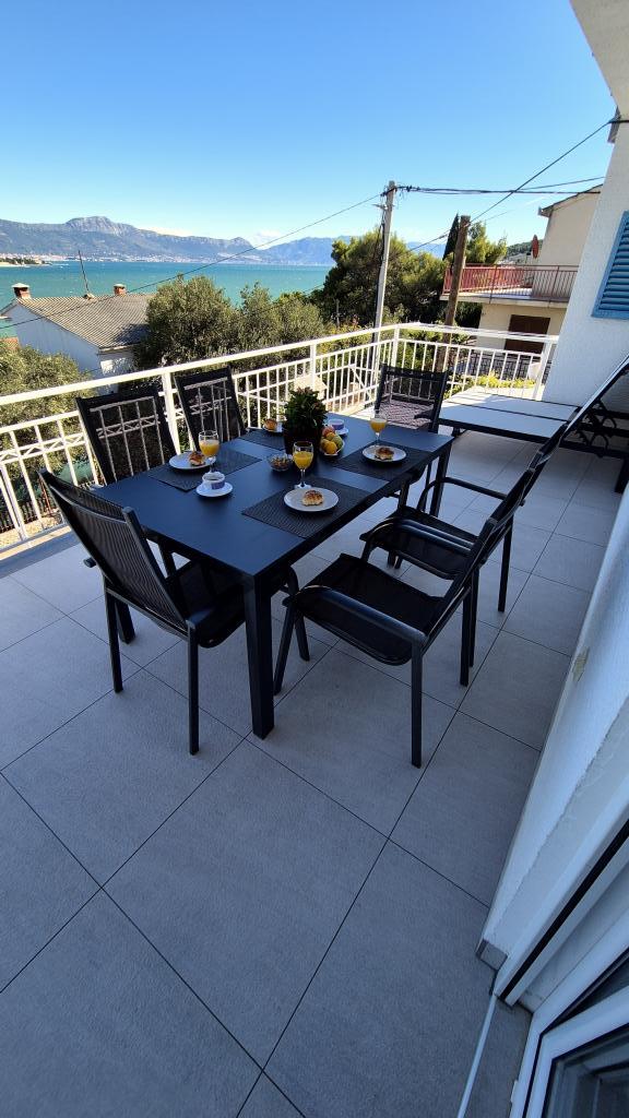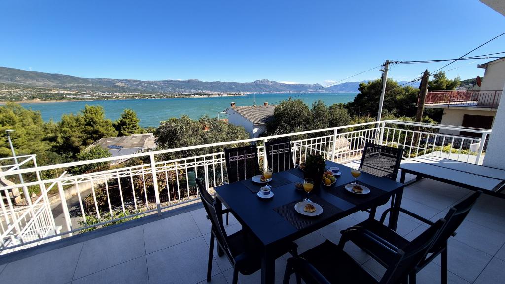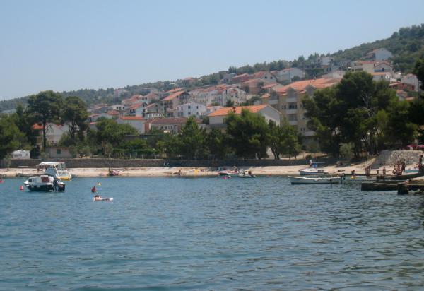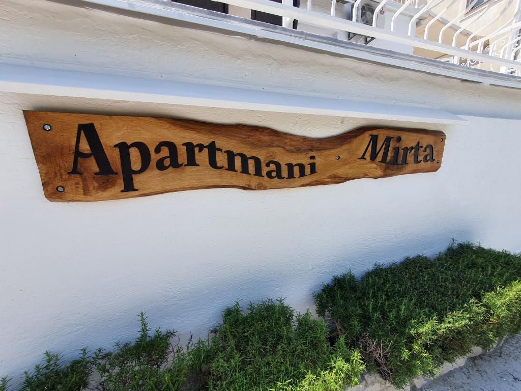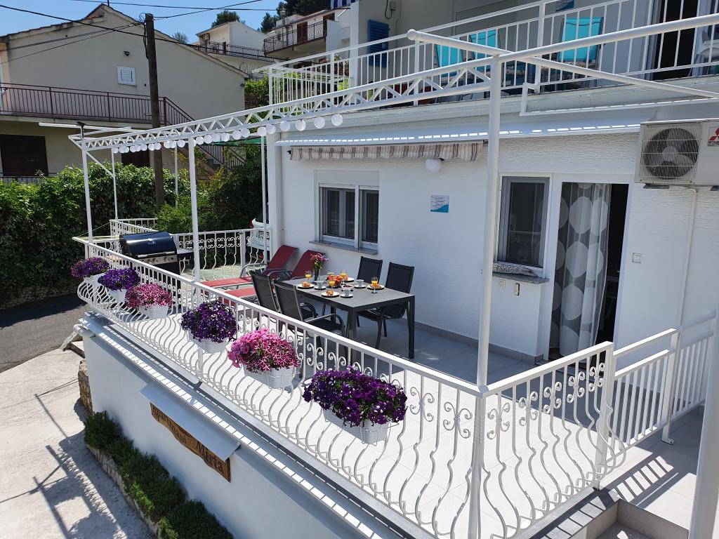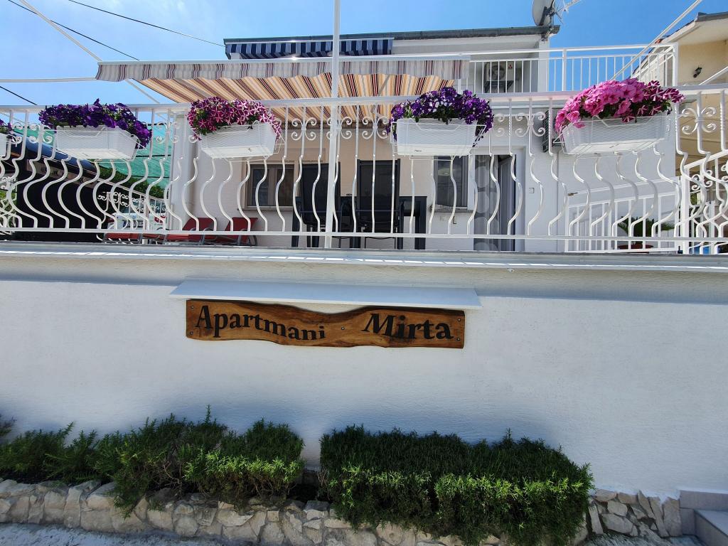 Apartamenty MIRTA znajdują się w północnej części wyspy Čiovo, 1,8 km na wschód od mostu łączącego stare miasto Trogir z Čiovo. Położone są w zacisznym miejscu, niedaleko lasu sosnowego i morza. Kamienista plaża znajduje się u podnóża apartamentu. Apartament 1 znajduje się na pierwszym piętrze domu otoczonego zielenią. Składa się z dwóch sypialni, salonu z jadalnią, kuchni i łazienki. Jest wyposażony tak, aby pomieścić 4-6 osób. W sypialniach znajduje się podwójne łóżko, a w salonie dodatkowe łóżko dla dwóch osób. Apartament 2 znajduje się na parterze. Składa się z dwóch sypialni (łóżka małżeńskie), salonu z jadalnią i kuchnią oraz łazienki. Apartamenty posiadają własny parking, osobne wejście i grill gazowy. Obydwa apartamenty posiadają taras z pięknym widokiem na morze i meblami ogrodowymi. Tarasy są idealne do całodziennego wypoczynku i spotkań towarzyskich na świeżym powietrzu.