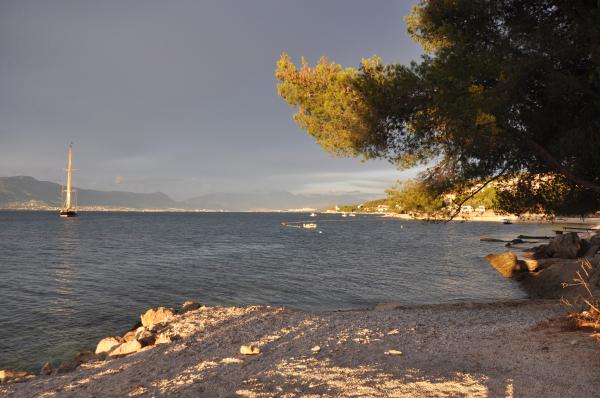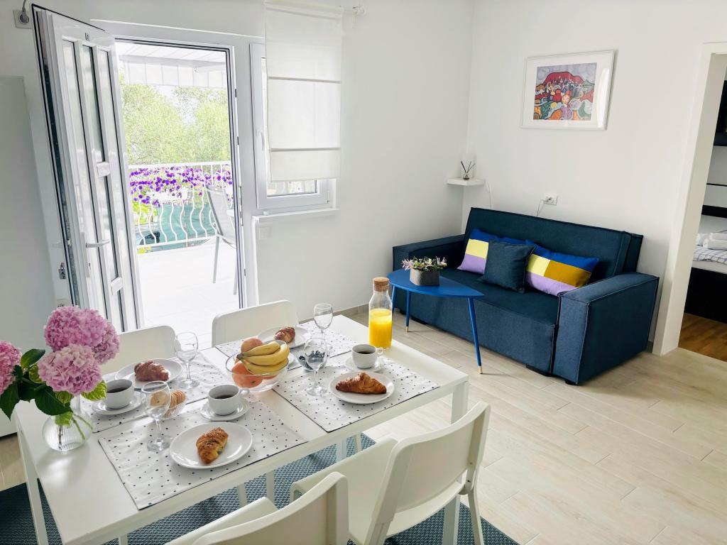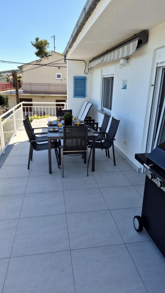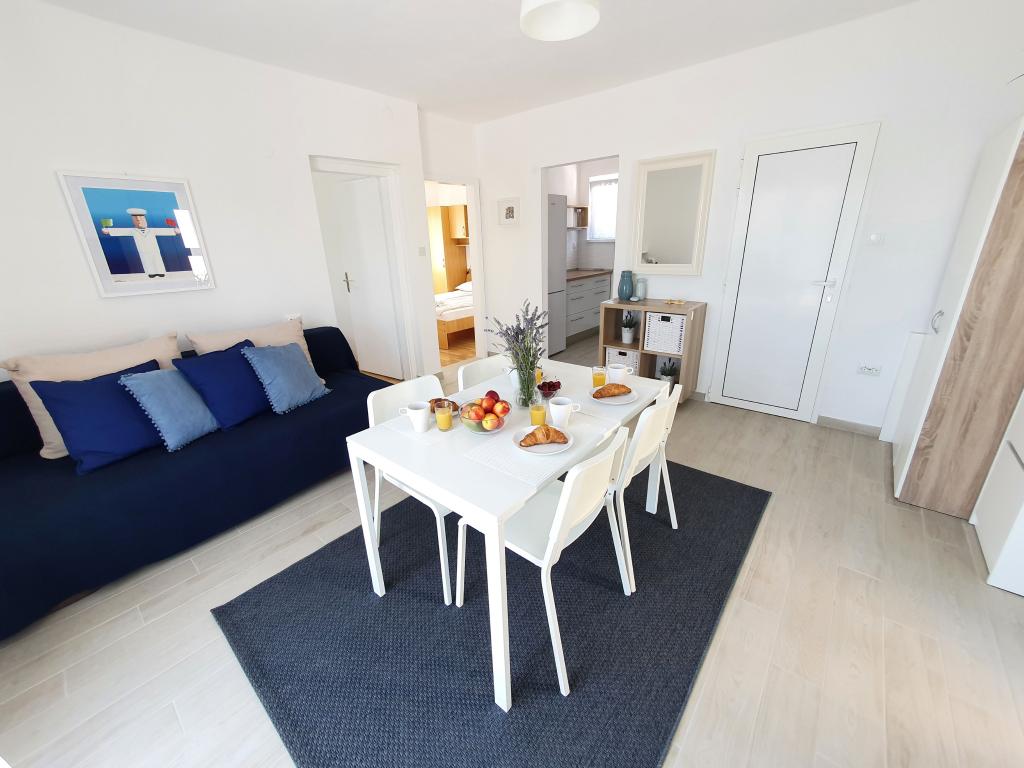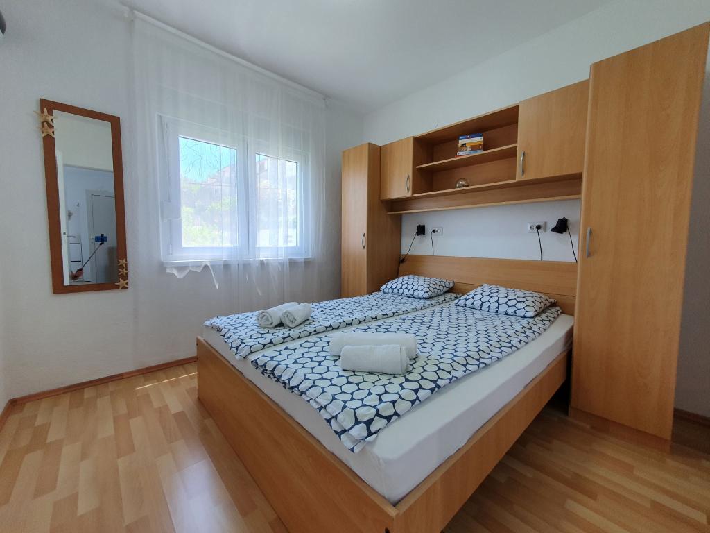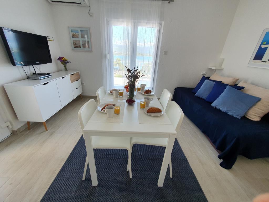 Apartamenty MIRTA znajdują się w północnej części wyspy Čiovo, 1,8 km na wschód od mostu łączącego stare miasto Trogir z Čiovo. Położone są w zacisznym miejscu, niedaleko lasu sosnowego i morza. Kamienista plaża znajduje się u podnóża apartamentu. Apartament 1 znajduje się na pierwszym piętrze domu otoczonego zielenią. Składa się z dwóch sypialni, salonu z jadalnią, kuchni i łazienki. Jest wyposażony tak, aby pomieścić 4-6 osób. W sypialniach znajduje się podwójne łóżko, a w salonie dodatkowe łóżko dla dwóch osób. Apartament 2 znajduje się na parterze. Składa się z dwóch sypialni (łóżka małżeńskie), salonu z jadalnią i kuchnią oraz łazienki. Apartamenty posiadają własny parking, osobne wejście i grill gazowy. Obydwa apartamenty posiadają taras z pięknym widokiem na morze i meblami ogrodowymi. Tarasy są idealne do całodziennego wypoczynku i spotkań towarzyskich na świeżym powietrzu.