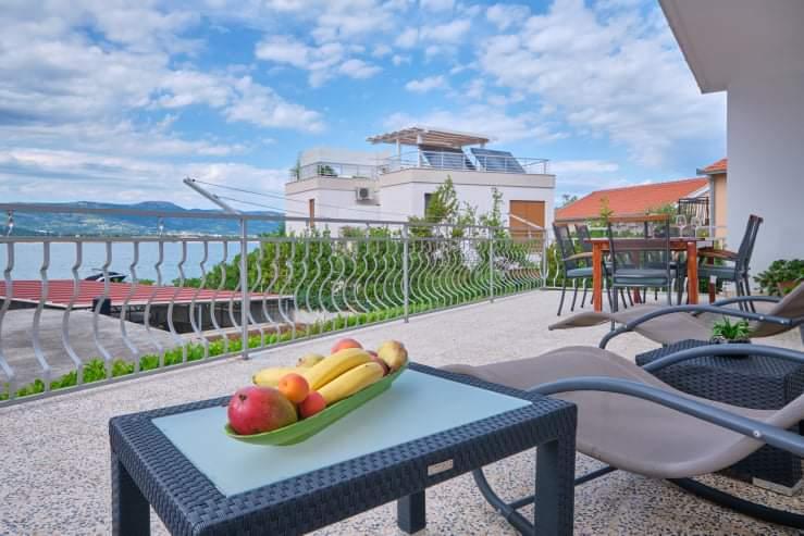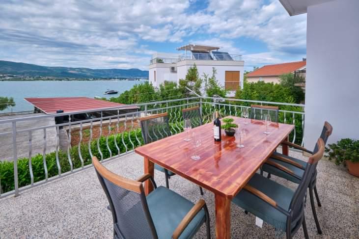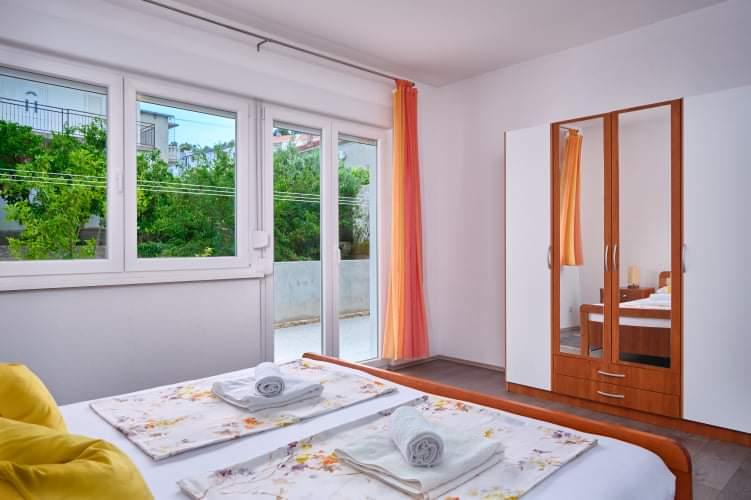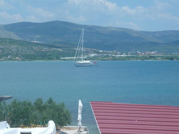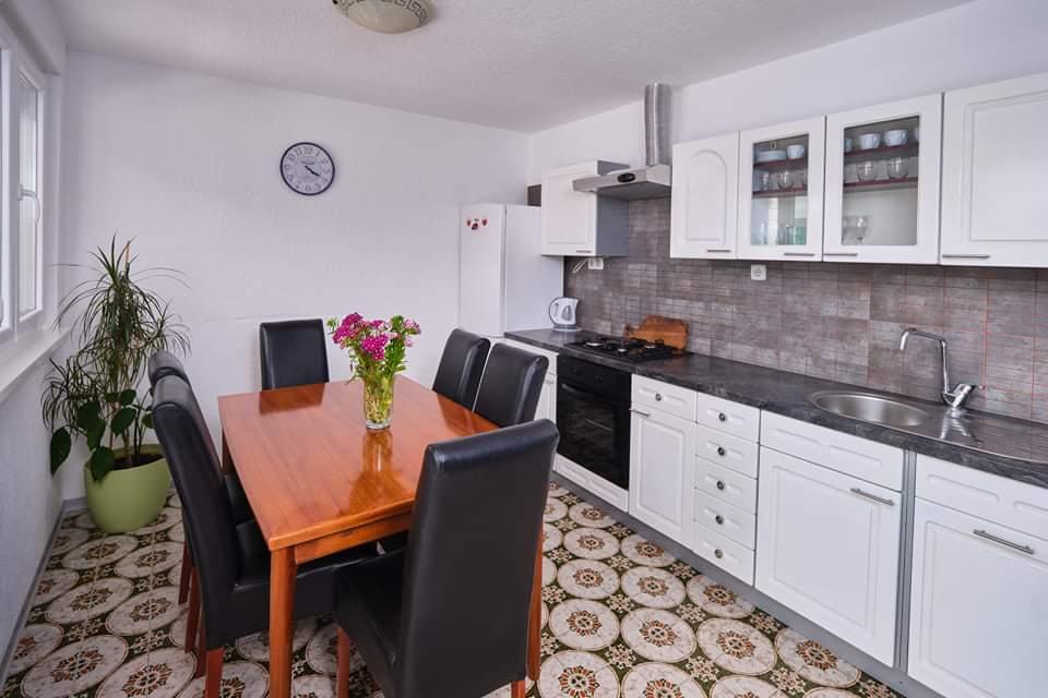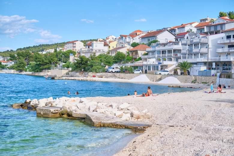 Dom położony jest w Mastrince w pięknej zatoce na wyspie Čiovo. Dom znajduje się 2 km od Trogiru i 5 km od lotniska. Trogir to miasto znajdujące się pod ochroną UNESCO, ze swoim pięknym pięknem i oferujące wspaniałe poczucie sztuki w jego starym centrum. Oprócz tego masz różnorodną ofertę GASTRO i życie nocne, które gwarantuje dobrą zabawę. Bogata oferta życia nocnego, imprezy taneczne na otwartych tarasach letnich, muzyka na żywo dla wszystkich pokoleń, dyskoteki, imprezy, festiwale, koncerty, śpiew klap. W domu znajdują się 3 w pełni wyposażone i klimatyzowane apartamenty z telewizją satelitarną. Każdy z apartamentów posiada własny balkon z pięknym widokiem na morze i plażę, która znajduje się zaledwie 10 m od domu. Parking znajduje się tuż przed domem dla gości przyjeżdżających samochodem. Okolica jest spokojna i cicha, a zaledwie kilka minut od domu można się bawić i bawić. Dla gości przylatujących samolotem istnieje możliwość bezpłatnego zorganizowania transferu pomiędzy lotniskiem a apartamentem i odwrotnie.