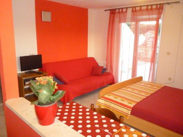 Zatrzymaliśmy się tam we wrześniu. Brak słów, aby opisać, jak widok z balkonu był miły: Trogir, góry, morze, jachty. Zarówno w dzień jak iw nocy. Mamy przyjemność brać lub kolację na balkonie. Stosunkowo spokojnej okolicy, zaledwie kurki i gong. Podobało nam się. Szczerze mówiąc, w dzień samolotami malejąco się trochę hałasu, ale to było specjalnie interesujące. Nie za daleko - bardzo ładny piekarnia. Zielony i rynki rybne w Trogir - wielki powód, aby przejść przez starego miasta (1,5 km w jedną stronę). Apartament był dobrze wyposażony. Niemal żadnych zastrzeżeń. Host - Miranda - bardzo przyjemny, miła i uśmiechnięta kobieta. Ale! Dla tych, którzy wezmą ten wybór. Willa ta znajduje się na szczycie wzgórza, zbocza bardzo strome, zwłaszcza bliżej willi, kiedy masz już zmęczony. Wąskie uliczki nie mają przepustki dla pieszych, trzeba podzielić się z samochodów i skuterów. To sprawia, że niektóre nerwowy. Jeśli nie masz doświadczenia do jazdy w takich warunkach - zostawić samochód u podnóża wzgórza. Ma dobrych plaż w okolicy 2 km! To miejsce dla miłośników pieszych wędrówek. Pewne zastrzeżenia do apartamentu: łóżka nie były bardzo wygodne, piszcząca, meblarskie - sintetic i szelest. Drzwi balkonowe nie działa prawidłowo, nie zamek i niech wody do środka podczas deszczu. W łazience - okropny zapach co noc. No duże lustro, tylko odbicie w drzwiach balkonowych. Mam nadzieję, że to przejściowe kłopoty do końca sezonu.