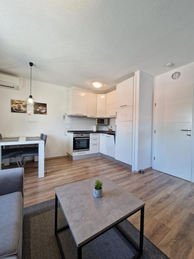 Mieszkanie jest nowe i nowocześnie wyposażone, czyste, posiada zmywarkę i pralkę. Nasz apartament miał bardzo ładny taras. Znajdują się one w spokojnej okolicy w pobliżu piaszczystej plaży. Gospodarze są bardzo mili i pomocni. Gorąco polecamy. To był pierwszy, ale nie ostatni pobyt w tym mieszkaniu.