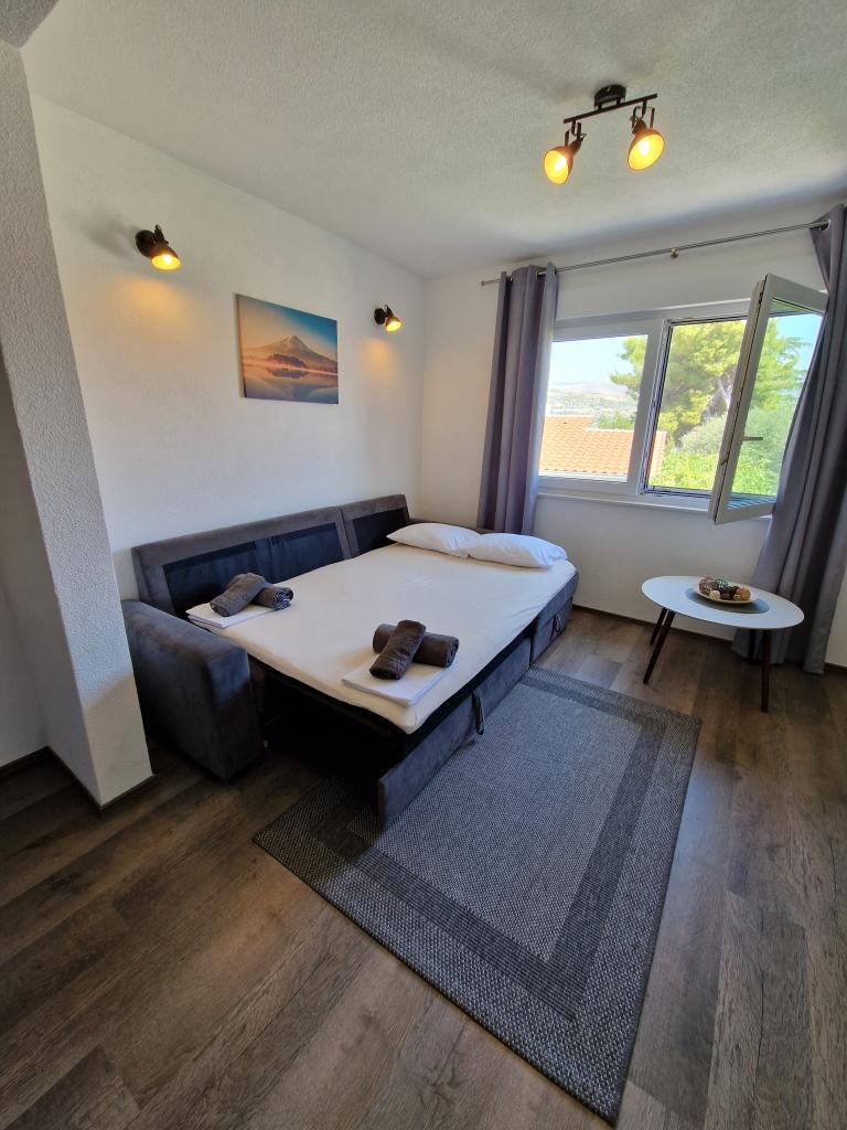 Gorąco polecam. Apartamenty są nowe, bardzo gustownie urządzone, klimatyzacja, okiennice, moskitiery, parking ... Do plaży jest 5 minut na piechotę. Do Trogiru 15-20 minut na piechotę. Zabiera również małą łódkę do centrum Trogiru. Sklep 2 min. Wszystko jest piękne i bardzo czyste. Gospodarze są bardzo przyjaźni i pomocni. Znajduje się w miłym, cichym miejscu z widokiem na morze. Gorąco polecam. Dziękuję