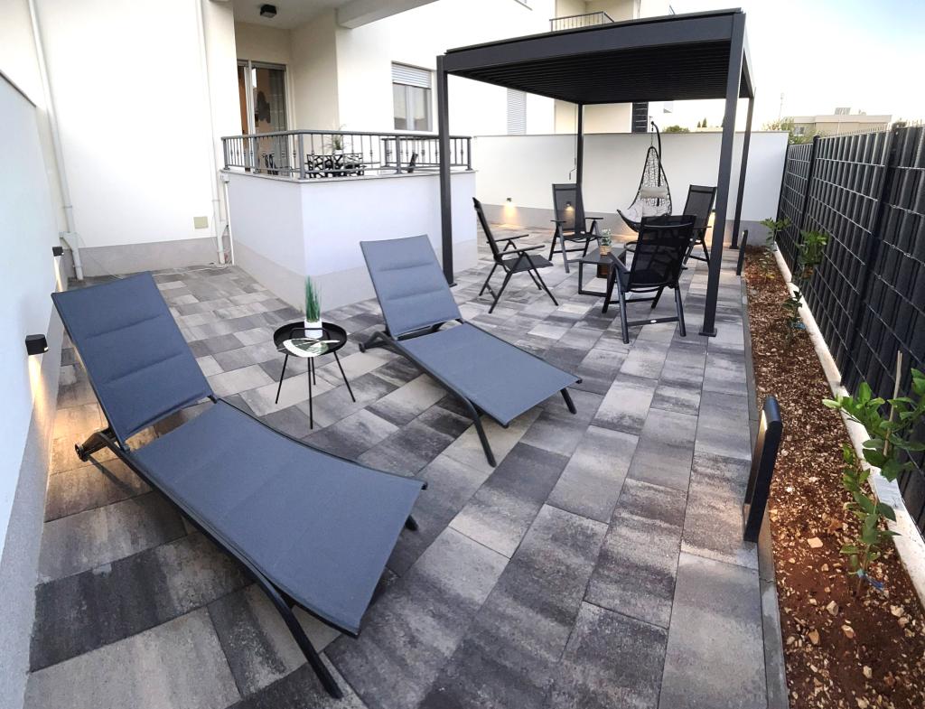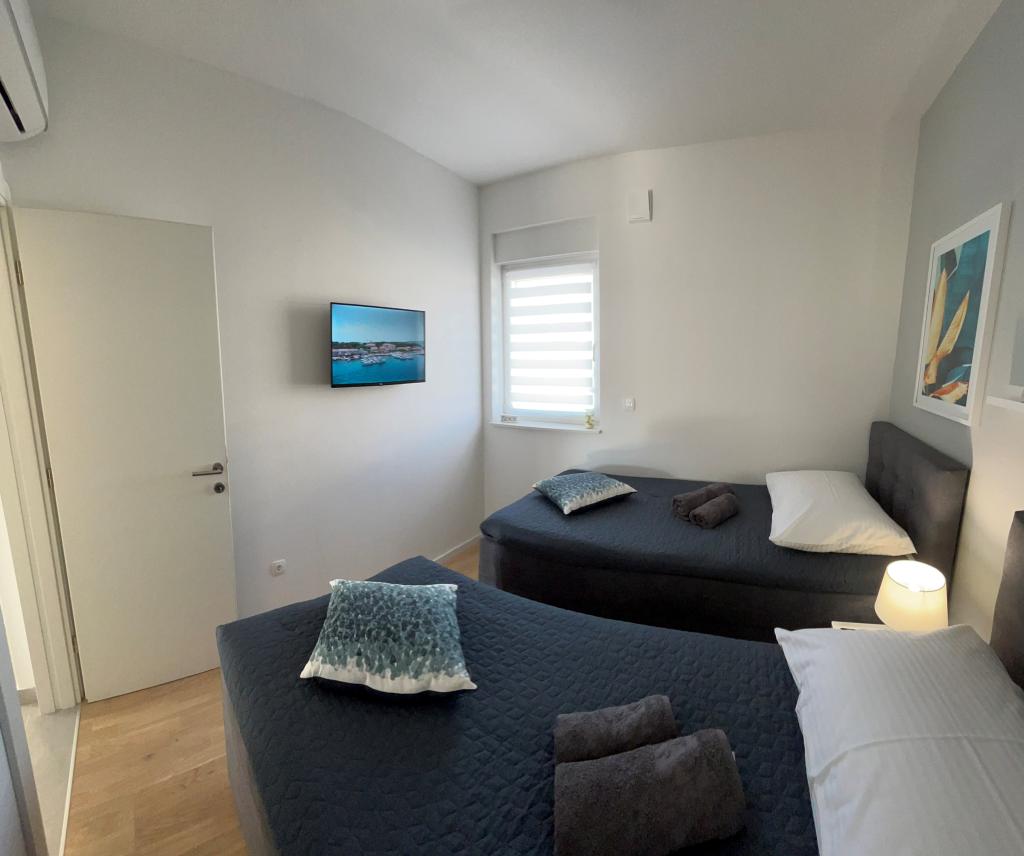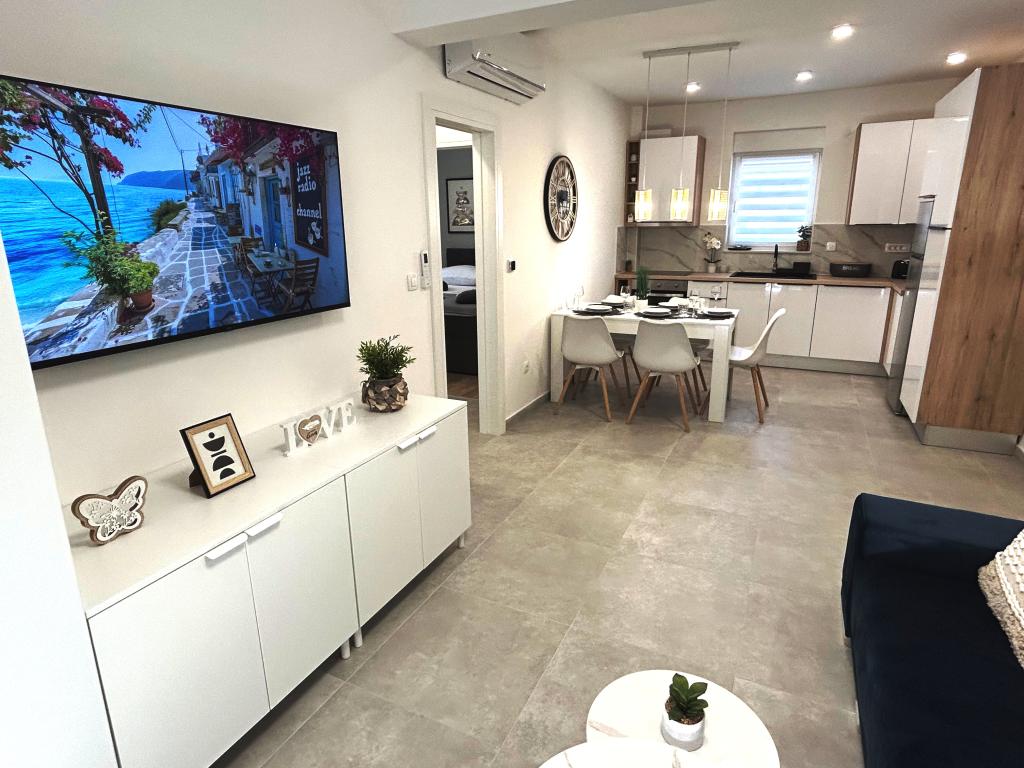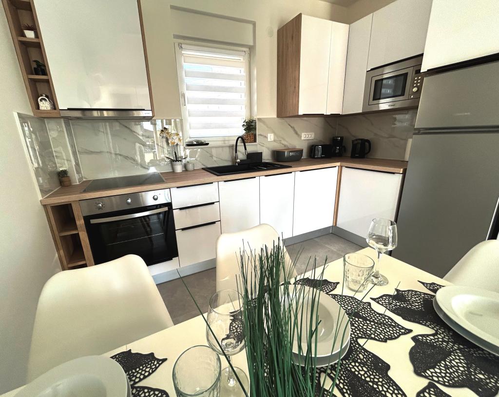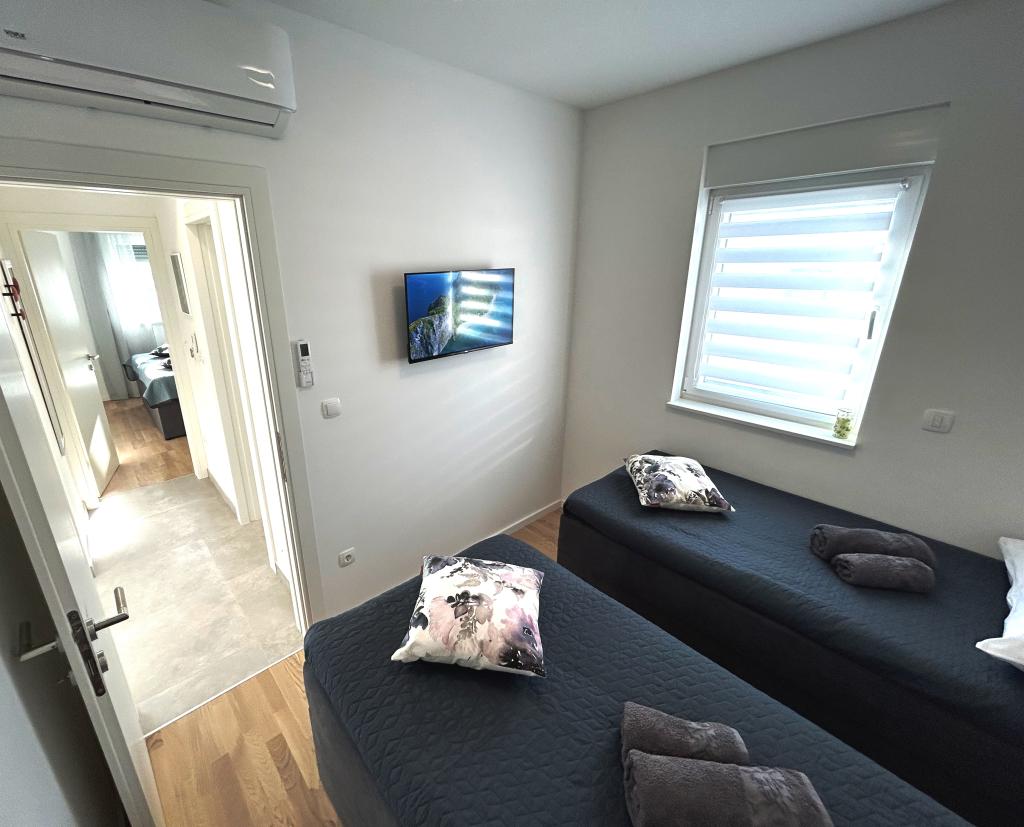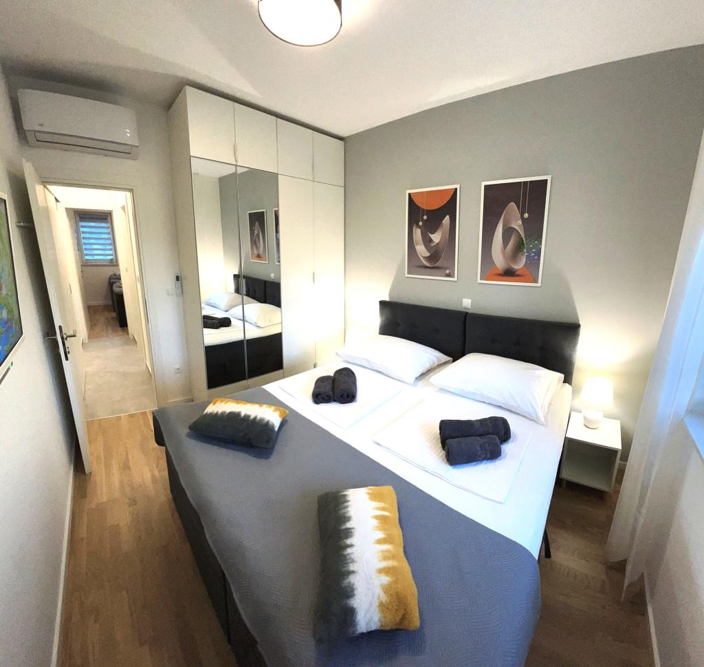 Apartamenty Town Trogir znajdują się na kontynencie Trogiru, w doskonałej lokalizacji, zaledwie 400 m od centrum starego miasta i 1000 m od nowej plaży miejskiej. Do wspomnianej plaży można dojść promenadą wzdłuż morza. Wszystkie główne obiekty są dostępne na piechotę, 5 do 10 minut spacerem. Apartamenty Town Trogir są nowe i mieszczą się w mniejszym budynku mieszkalnym z 6 apartamentami. Apartamenty mają powierzchnię ok. 60 m2. Apartamenty znajdują się na parterze, pierwszym i drugim piętrze.