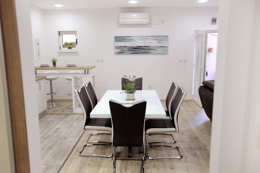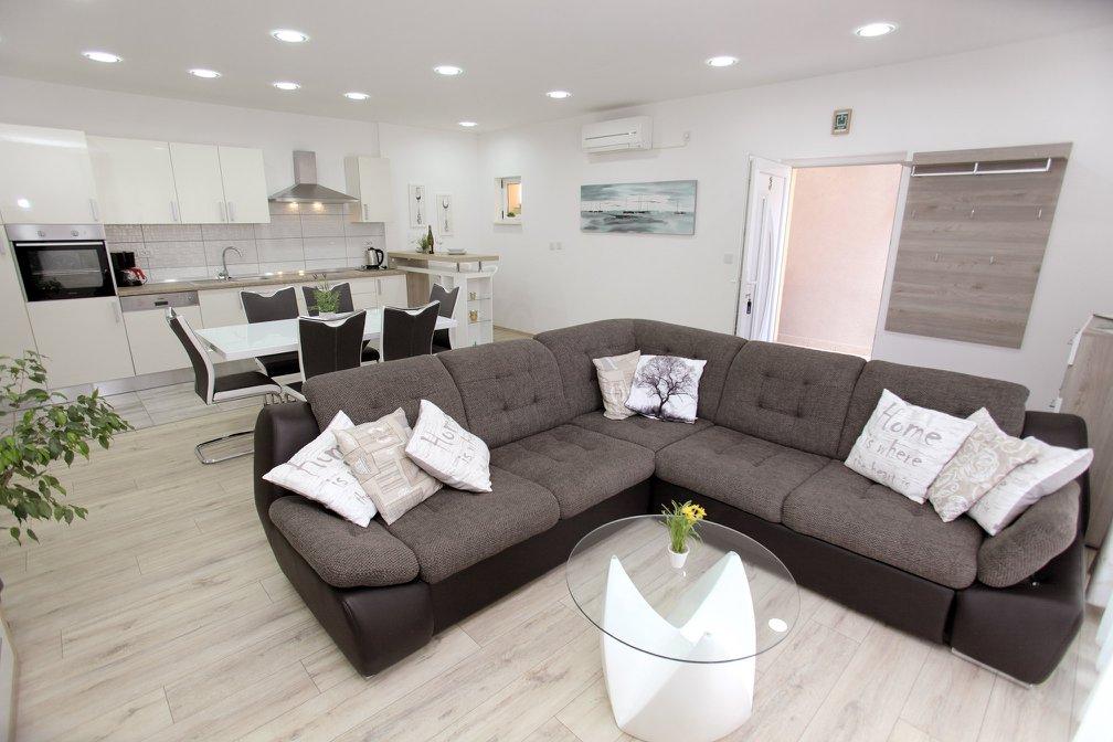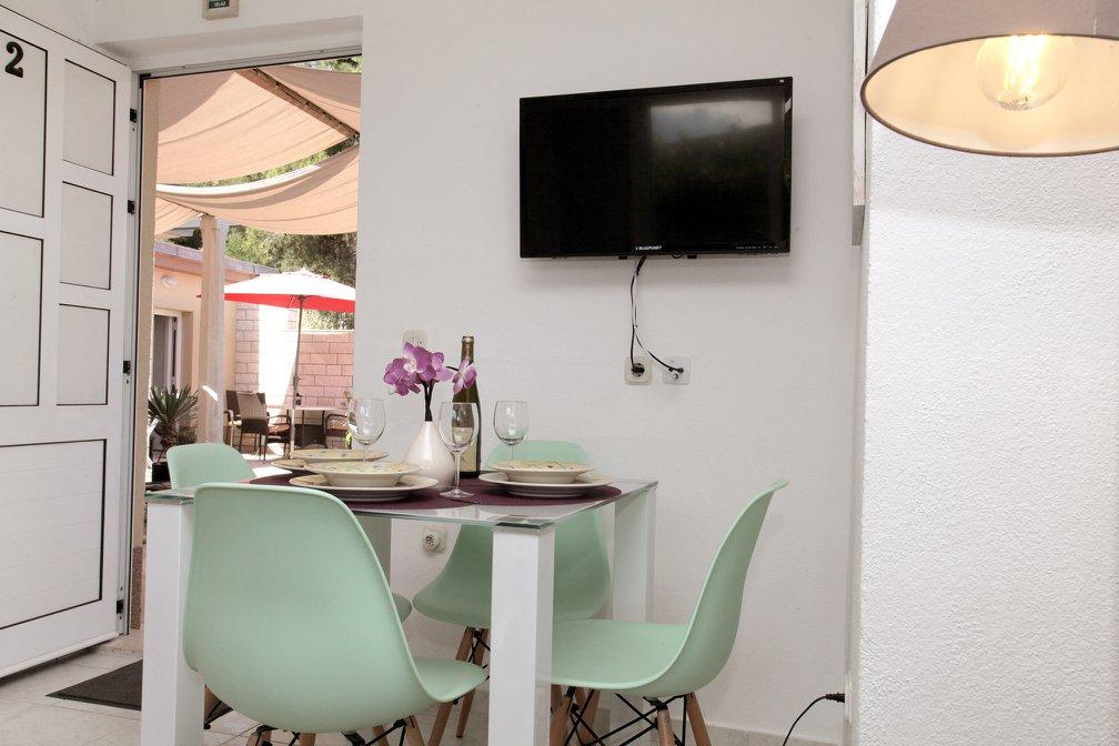 Apartament 2+1 duży - świetny, bardzo blisko plaży. Minusem jest brak prysznicy na plaży oraz bardzo mało lokali gdzie można zjeść. W restauracjach płatność tylko gotówką. 2 km od Trogiru gdzie jest wszystko co potrzeba. Polecam jeśli szukacie ciszy, spokoju i sami będziecie gotować.