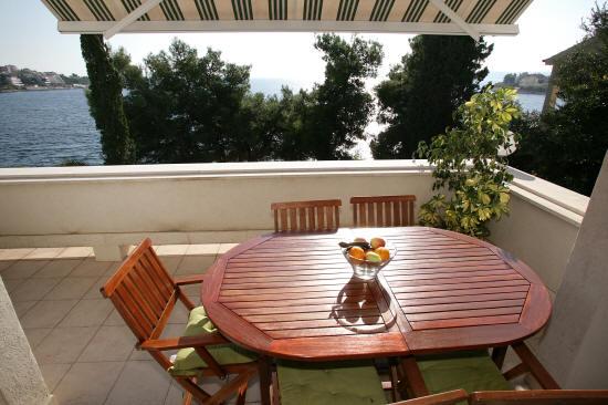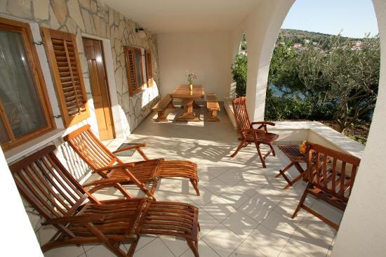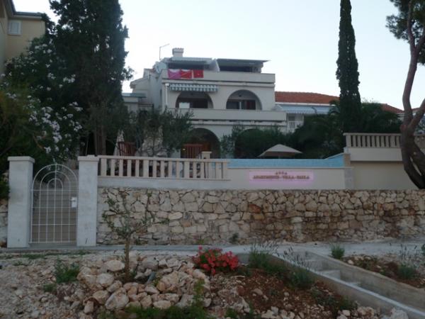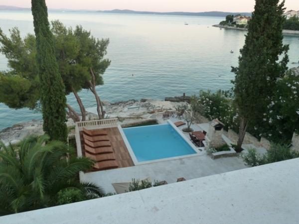 Apartamenty w południowej części Ciovo w zatoce Mavarstica. Dom jest tuż nad brzegiem morza i oferuje piękny basen przed dom nad morzem, w parku drzew z kominkiem i dodatkowych urządzeń do opalania i relaksu, do dyspozycji wszystkich gości. Centrum, wyposażone we wszystkie udogodnienia znajduje się około 400 metrów. Trogir położony jest około 5 km. Podziel International Airport znajduje się około 8 km.