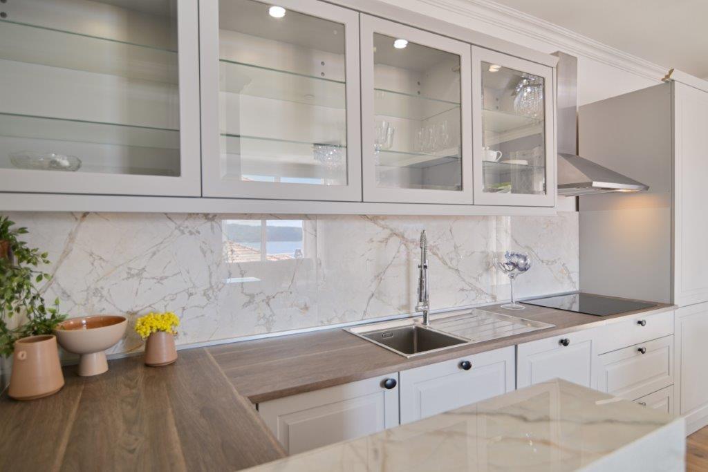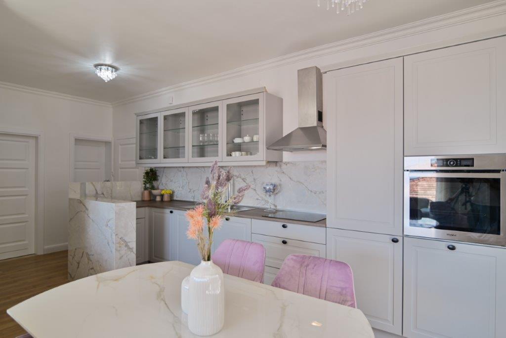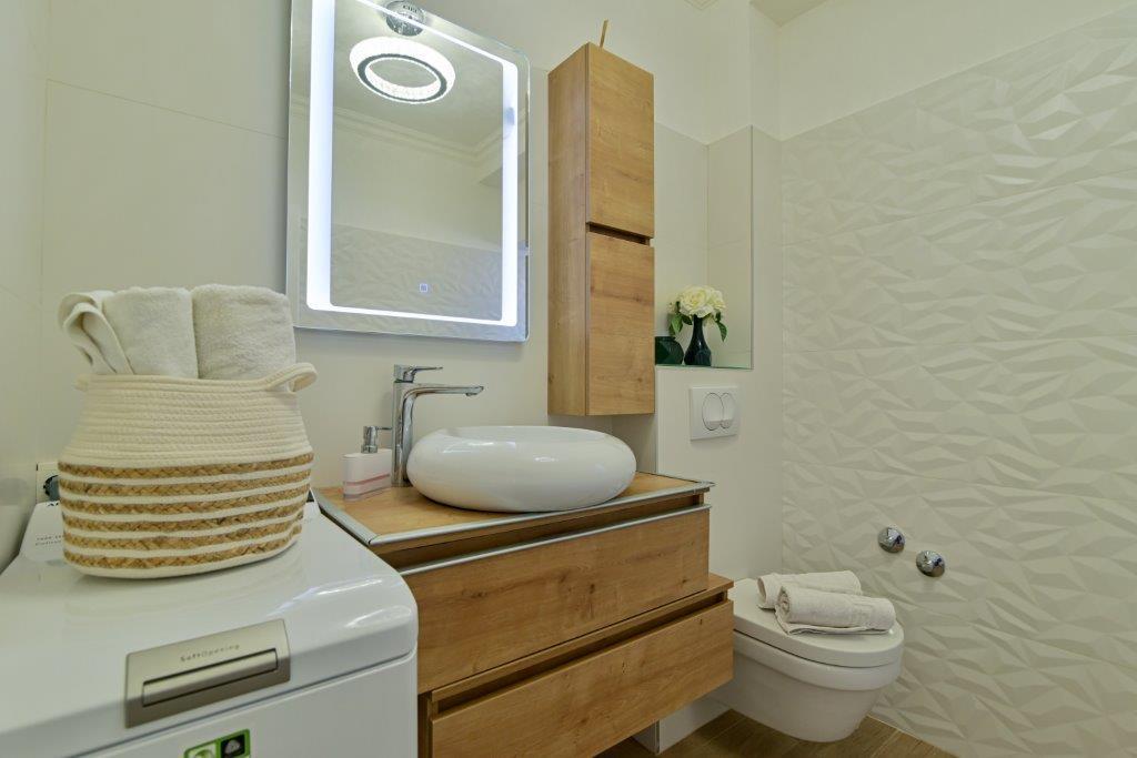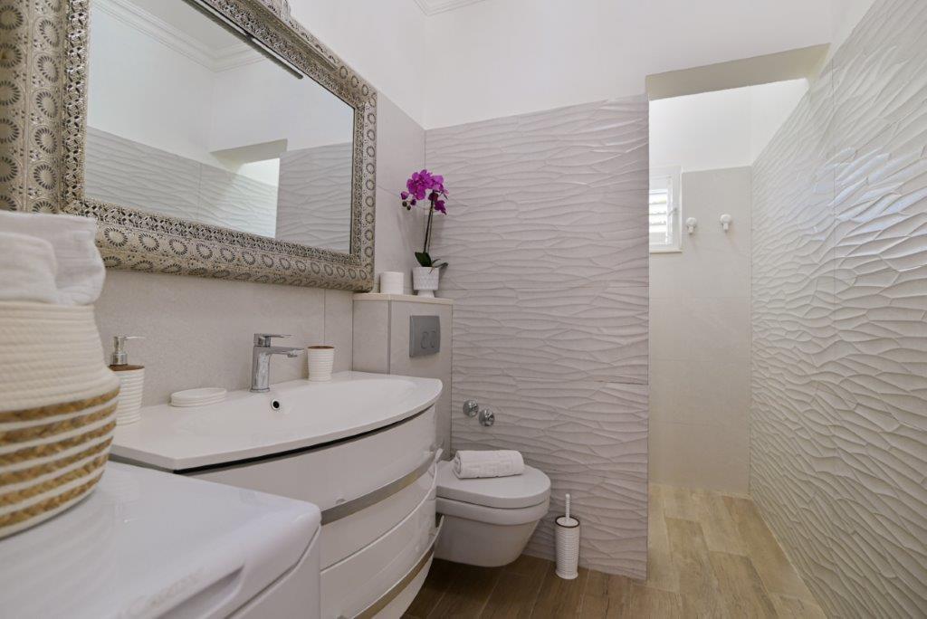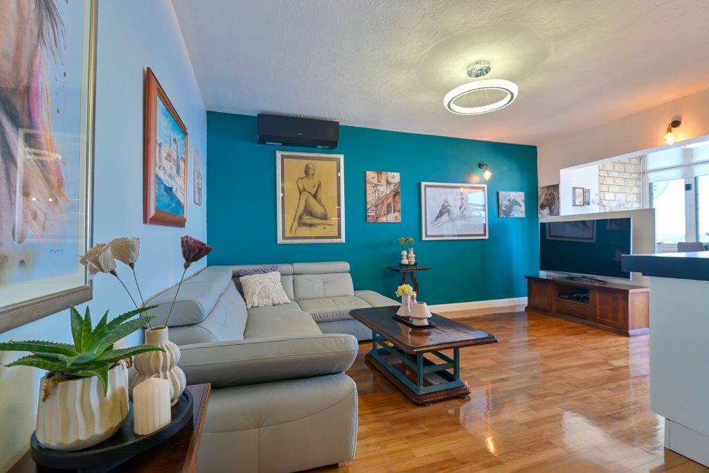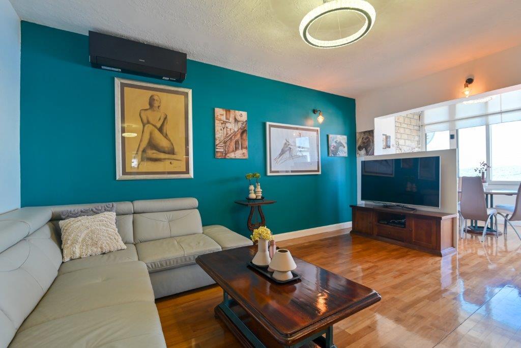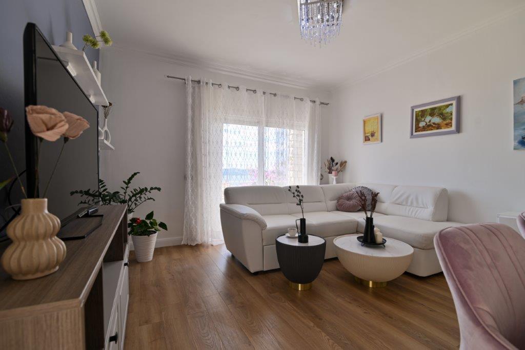 Jest to dom z tekskluzivna mieszkań. Znajduje się w atrakcyjnej części miasta. W południowej części wyspy Ciovo (połączone mostem na brzeg i pięknego miasta Trogir (UNESCO)). Dom położony jest w dzielnicy Mirnyi, z dala od morza (plaża z sosny), niektóre 200m z atrakcyjnej plaży miejskiej w Okrug Gornji około 700m. Odległość od restauracji i sklepów zostało zakończone 150m, szpital, poczta, a wszystkie obiekty są położone w centrum miasta, które znajduje się około 15 minut. chodzenia i około 5 km od lotniska Split (oferowane transport z lotniska po wcześniejszym uzgodnieniu z właścicielami). Dom ma dwa mieszkania. Każdy z nich jest w pełni wyposażone i mają wspaniały widok na morze. Jednym z nich jest podzielone na 4 gwiazdki. Znajduje się na parterze posiada taras i dwa balkony. 2 sypialnie, pokój dzienny z rozkładaną sofą, jadalnią i kuchnią i 2 łazienkami. Wyposażona w pełni (klimatyzacja, Wi-Fi, telewizja satelitarna, pralka, wszystkie urządzenia kuchenne, parking ... a. Drugi znajduje się w kategorii 3 gwiazdki. On jest pierwszym
