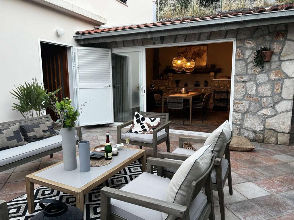 Apartment jest ładnie urządzony,pokoje czyste z widokiem na morze. Duży wspniały taras połączony z kuchnią, dostępne są niezbędne urządzenia i sprzęty np; do grilowania.. Gospodarze są bardzo przyjaźni zawsze dostępni. Spokojna,ładna okolica, bez tłumów turystów. Blisko do sklepu czy do restauracji, gdzie jest pyszne jedzenie.Cudne zachody słońca.Do plaży 10m, do promenady 15 min spacerkiem. Spędziliśmy tam 2 tygodnie w 3 pary i wciąż nam mało. Na pewno tam wrócimy. Szczerze polecam!