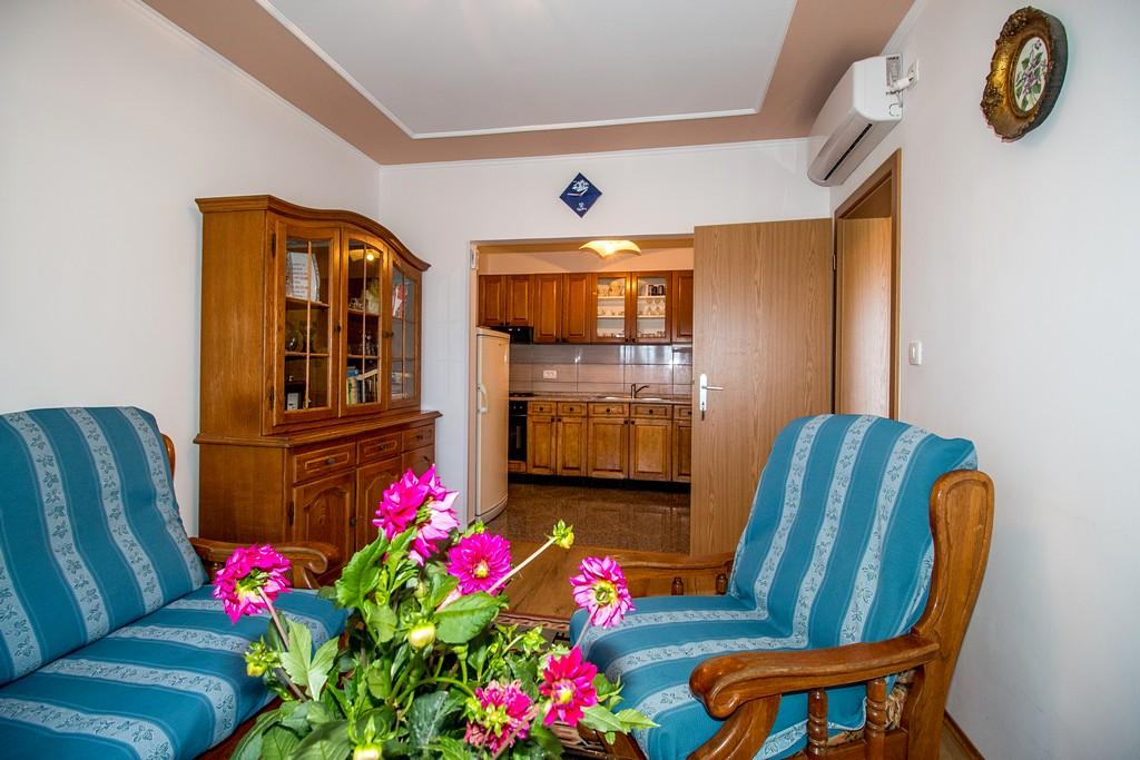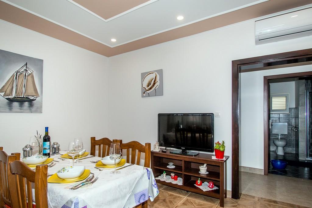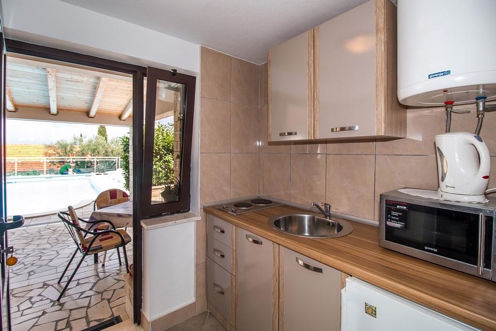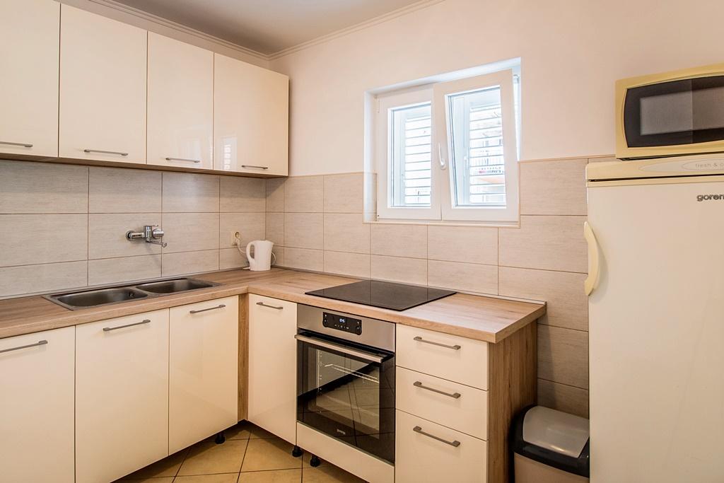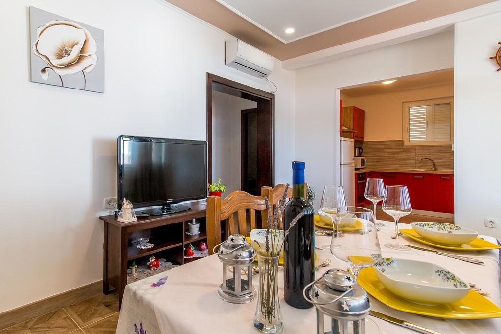 To był jeden z naszych najlepszych urlopów w Chorwacji. Zarówno apartament jak i gospodarcze zasługują na najwyższe oceny. Wszędzie czysto, basen zadbany. Gospodarze przesympatyczni, otwarci i niesamowicie gościnni.Trzykrotnie zostaliśmy ugoszczeni przez gospodarzy przepysznym jedzeniem oraz swojskim winem. W trakcie pobytu córka obchodziła urodziny, już z rana Ivo przyszedł z życzeniami i pysznym, swojskim miodzikiem. Zawsze trafiamy na fajnych gospodarzy ale chyba nigdy dotąd nie spotkaliśmy się z aż taką gościnnością. Można z nimi bez większego problemu porozumieć się w języku polskim. Zawsze służą dobrą radą. Na pewno wrócimy. Co do miasteczka w moim odczuciu jest ono w sam raz, jest gdzie zjeść, jest gdzie iść na spacer, jest gdzie zrobić zakupy, są plaże żwirkowe, betonowe, węższe, szersze, z knajpką (piwo, lody. kawa) lub bez. Jest wszystko oprócz tłumów co dla mnie jest zaletą.