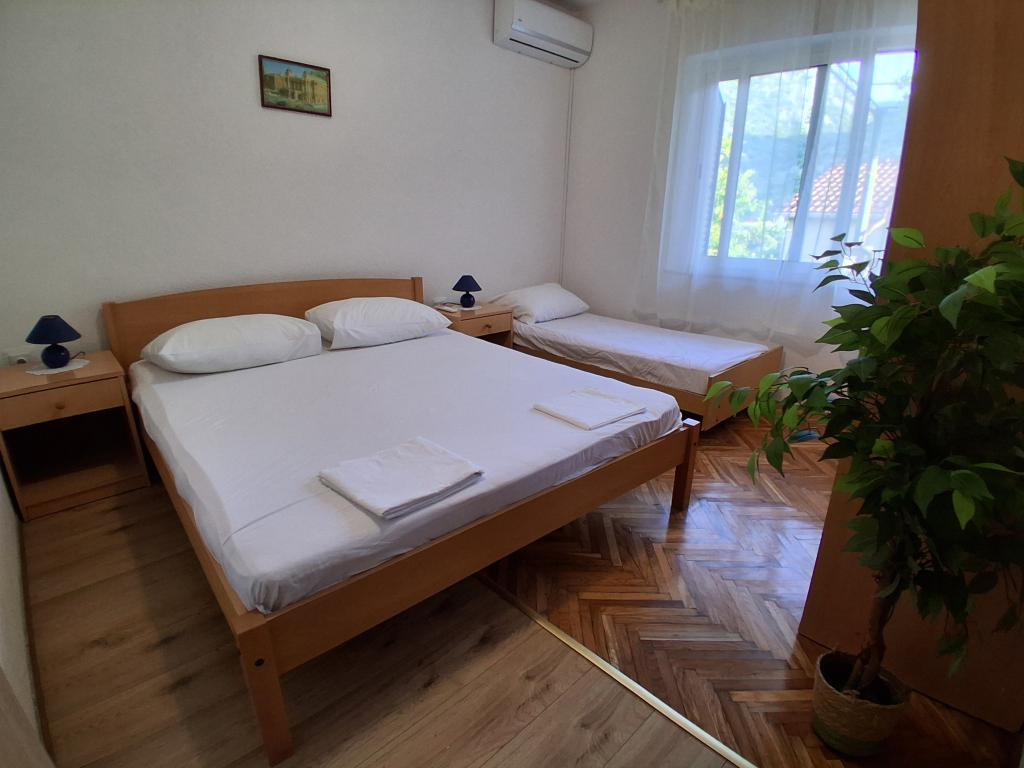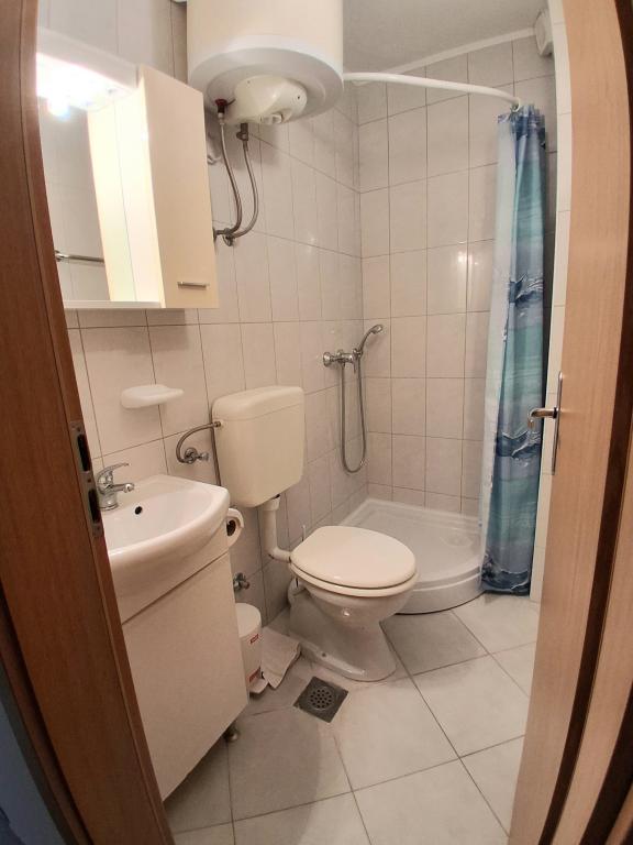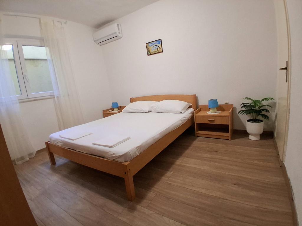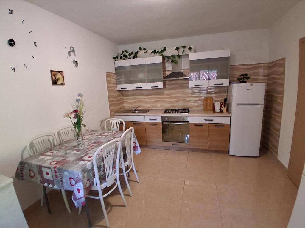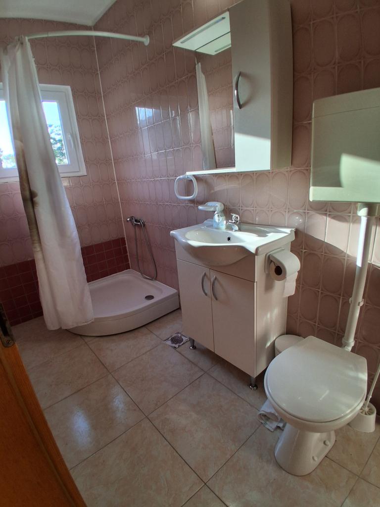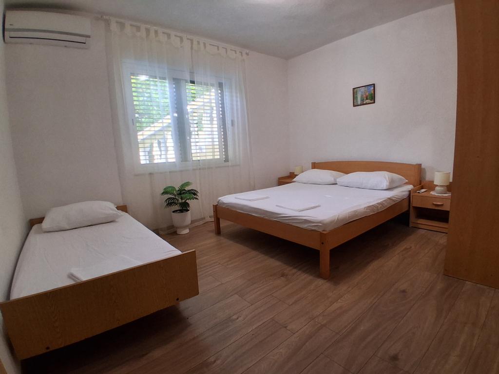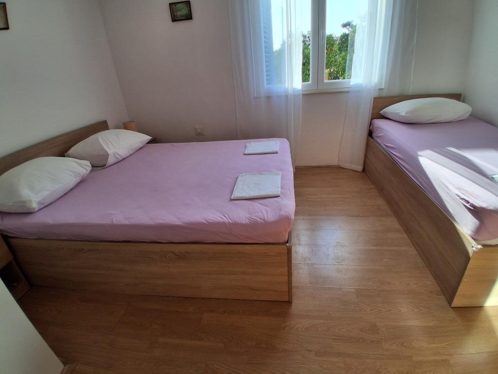 Apartament A1. - Znajduje się na parterze. Składa się z 3 pokoi z łazienkami, pojemności 6 oraz 2 łóżkami. W pełni wyposażona kuchnia. Taras z TV, grill. Apartament może być wynajmowane jako pokoje z użytkowania kuchni. Apartament A2. - Znajduje się na pierwszym piętrze. Składa się z sypialni z trzema łóżkami, łazienka, pokój dzienny, kuchnia, TV. Sofa z 140x200 cm łóżko. , Balkon, taras. Klimatyzacja jest dodatkowa opłata w wysokości 5 € za dzień. Grill jest powszechne na ziemi. Apartament A3. - Znajduje się na pierwszym piętrze. Składa się z sypialni z trzema łóżkami, łazienka, kuchnia, pokój dzienny z telewizorem i rozkładaną sofą z 140x200 cm, balkon, taras. Klimatyzacja jest dodatkowa opłata w wysokości 5 € za dzień. Grill jest powszechne na ziemi. Apartament A4. - Znajduje się na drugim piętrze. Składa się z trzech sypialni, pojemności 6 plus drugie dwie łazienki znajdujące się w korytarzu, kuchni, TV, balkon, taras. Parking. Położony w odległości 50 metrów od domu