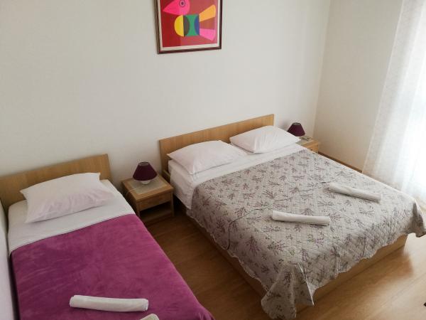 Nowocześnie wyposażone apartamenty i pokoje w pobliżu Makarskiej, 100m od morza. Obiekt znajduje się w Tucepi, 5 minut spacerem od centrum miasta. Znajduje się na elewacji, co daje zakwaterowanie piękny widok na morze i jedyne miejsce. W mieszkaniu znajduje się apartament dla 4 lub 5 osób, studio dla 2 osób i dwa pokoje dla 3 osób. Cena obejmuje internet, klimatyzację i parking.