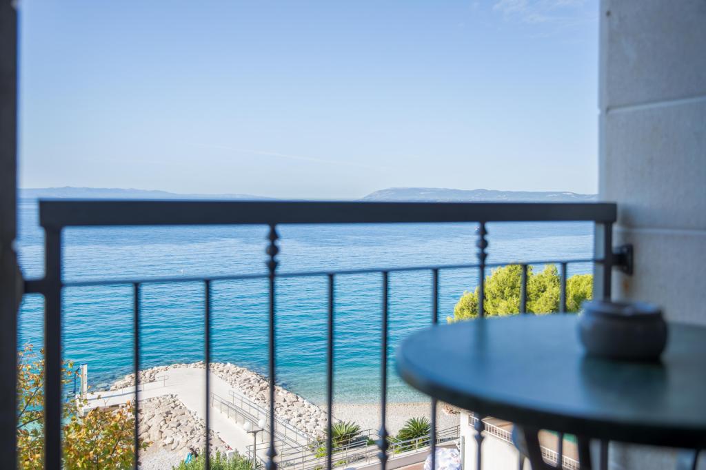 Nowo urządzony apartament z widokiem na morze na drugim piętrze i apartament bez widoku na parter na plaży w Tucepi, pierwszym rzędzie do morza. Apartament znajduje się 100 metrów od centrum, a odległość do pięknej kamienistej plaży wynosi zaledwie 20 metrów.
