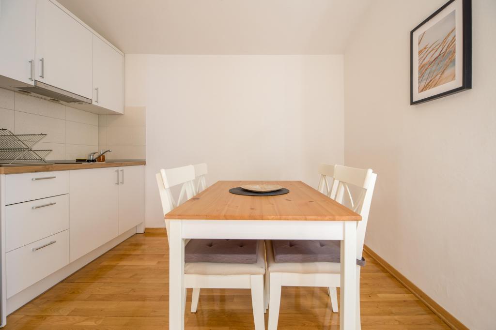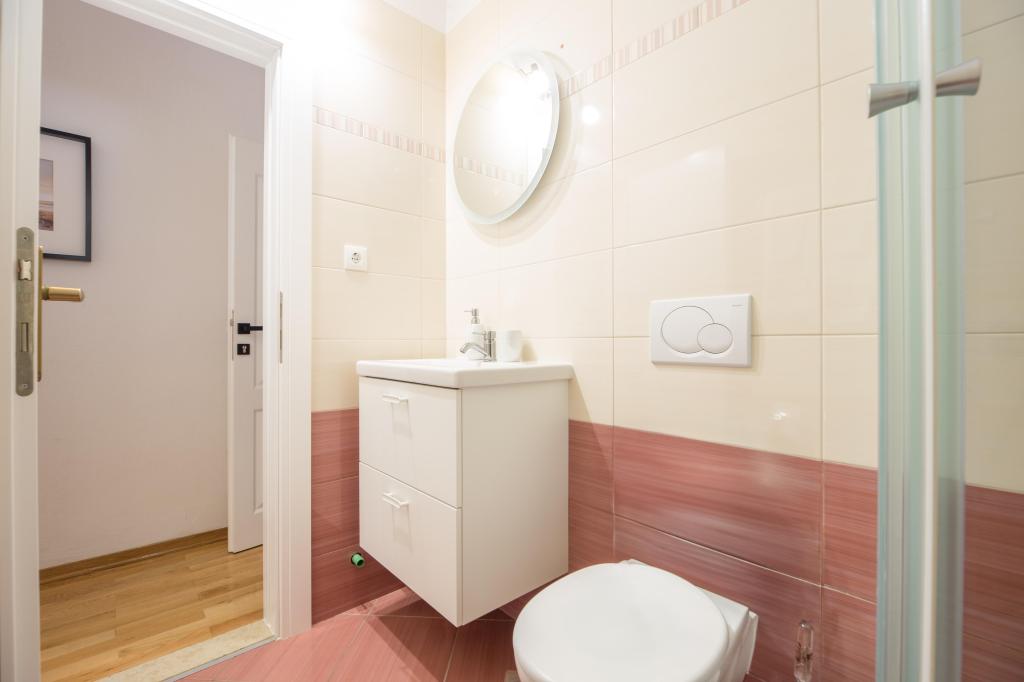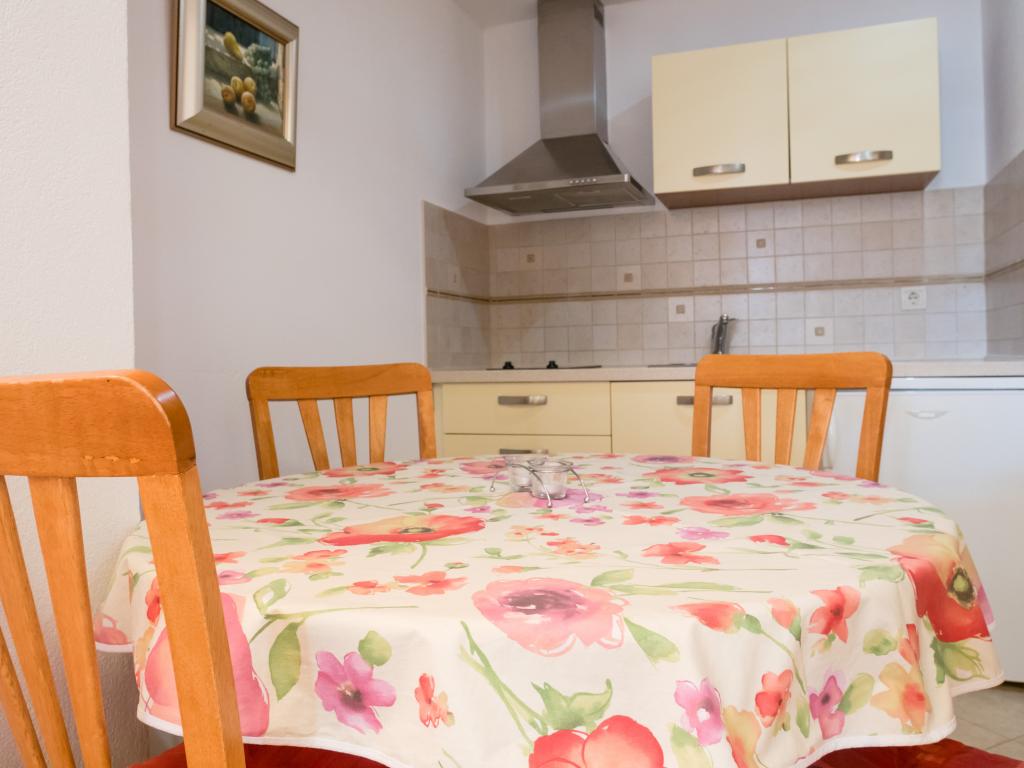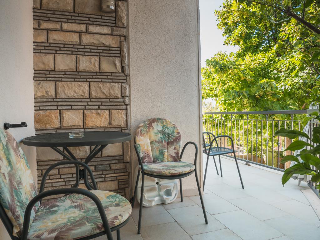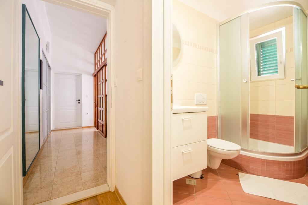 Dom położony jest w pierwszym rzędzie do morza, ale jest wyciągnięty, do morza jest około 30 stopni i dwie piękne plaże, dzięki czemu nie dochodzi do niego cały hałas z promenady. Parking dla samochodu znajduje się tuż obok domu, a po drugiej stronie ulicy znajduje się dodatkowy parking. Mieszkanie jest dość przestronne, idealne dla dwóch osób przyzwyczajonych do wygody. Mieszkanie jest piękniejsze osobiście niż na zdjęciach. Ma wszystko, czego potrzeba do przyjemnego pobytu. Poziom czystości jest znakomity. Przed apartamentem znajdują się dwa drzewa (lipa i lipa), które zapewniają idealny cień. Podczas naszego pobytu włączyliśmy klimatyzator tylko na jeden dzień, mimo że jest w mieszkaniu i działa świetnie. Internet jest dość stabilny i niezawodny w całym domu. Właścicielka to bardzo serdeczna i nienarzucająca się osoba. Regularnie zmieniała pościel i ręczniki oraz wynosiła śmieci.