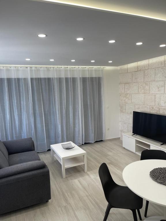 Nowe, nowoczesne apartamenty z 2 oddzielnymi sypialniami (w każdym pokoju łóżko małżeńskie, bez możliwości dostawki), kuchnią z salonem (sofa nie rozkłada się), łazienką, toaletą, pralnią, parkingiem bezpośrednio przed budynkiem. Każdy pokój w apartamencie posiada klimatyzację, Smart TV, superszybki internet, balkon z widokiem na morze, kilka minut spacerkiem do plaży Kamena.