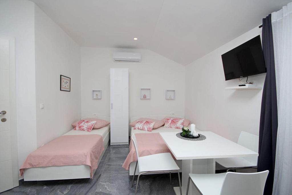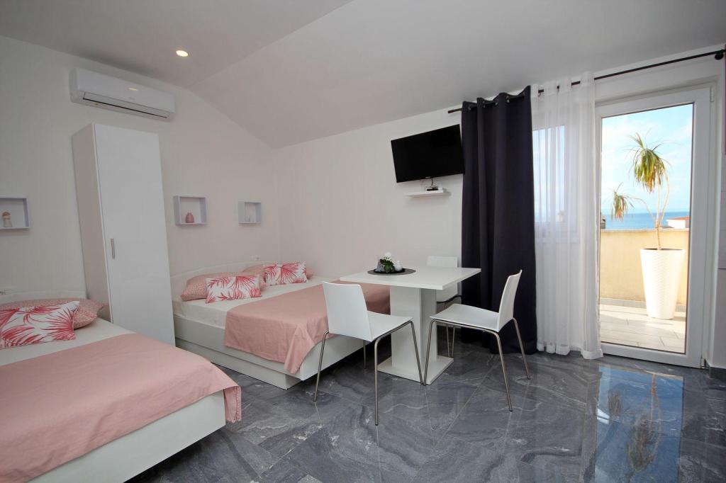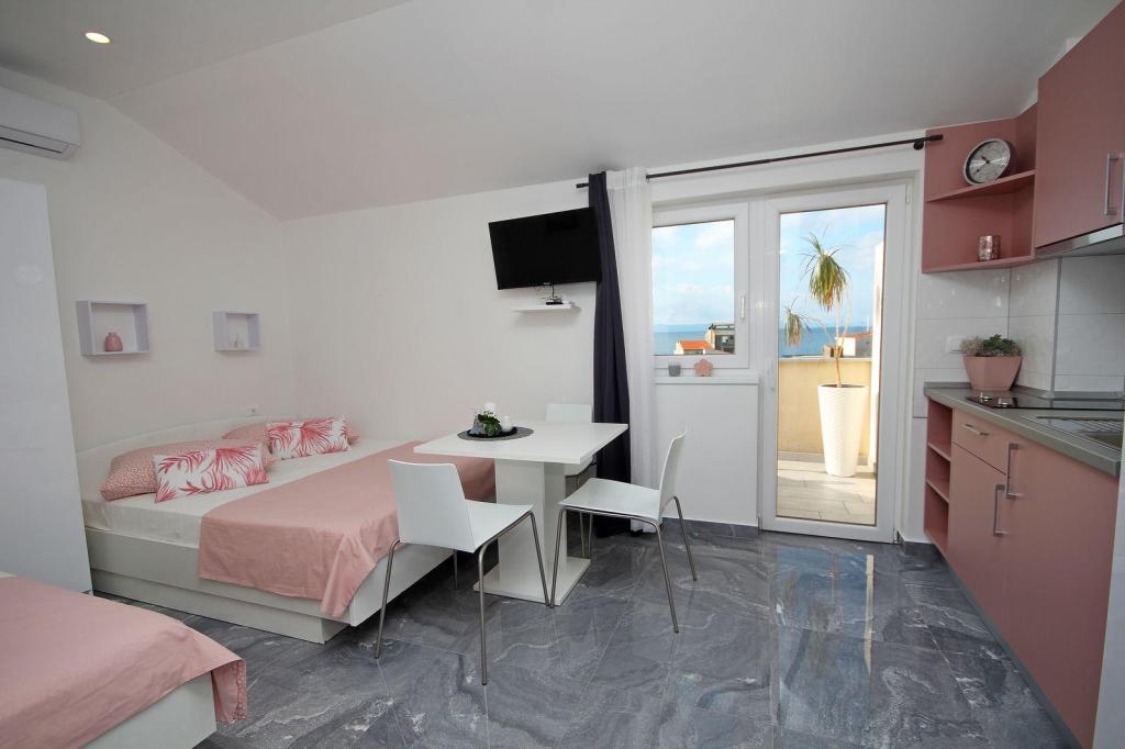 Nasze apartamenty mogą pomieścić 2 2, 3 2 (b), znajdują się na 1 i 2 piętrze w centrum Tučepi, odpowiedni dla rodzin z dziećmi, dla 2 par, grup sportowych, osób starszych i innych Apartamenty są nowo wyposażone w:. Oddzielne sypialnie, pokój dzienny, klimatyzacja, Sofa można przekształcić w łóżko 200/140, kuchnia, łazienka, balkon z widokiem na morze i ziemię, telewizor LCD z telewizją satelitarną, WLAN internet i zamknięty parking dla każdego mieszkania samochodem. Wszystko, czego potrzebujesz jest w zasięgu 150m.