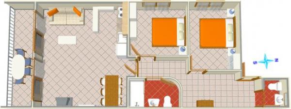 Apartament dla czterech osób z dwoma dostawkami (68 m2)