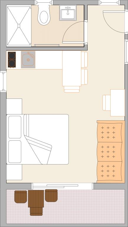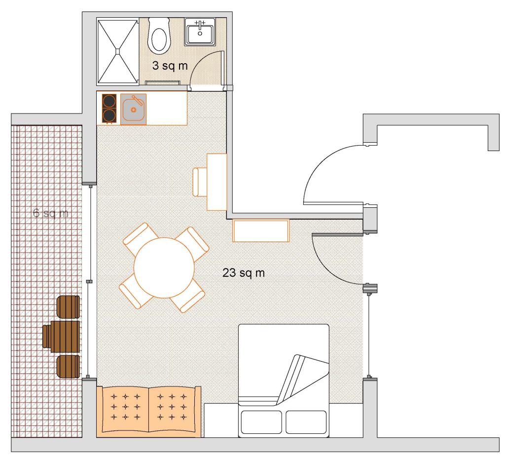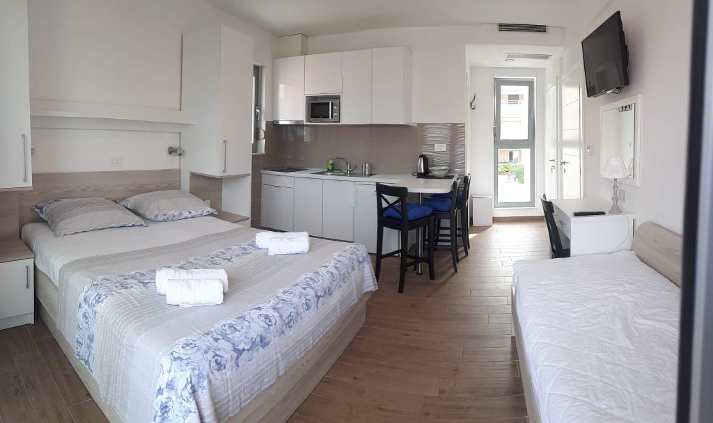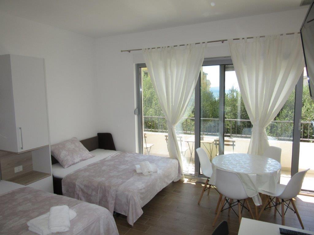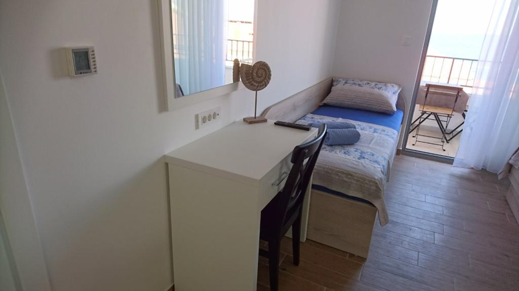 Wszystkie apartamenty oferują piękny widok na morze i możliwość delektowania się posiłkami na tarasie.