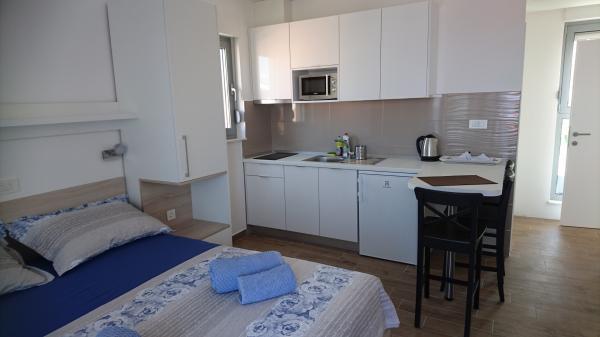 Wszystkie apartamenty oferują piękny widok na morze i możliwość zjedzenia posiłku na tarasie.