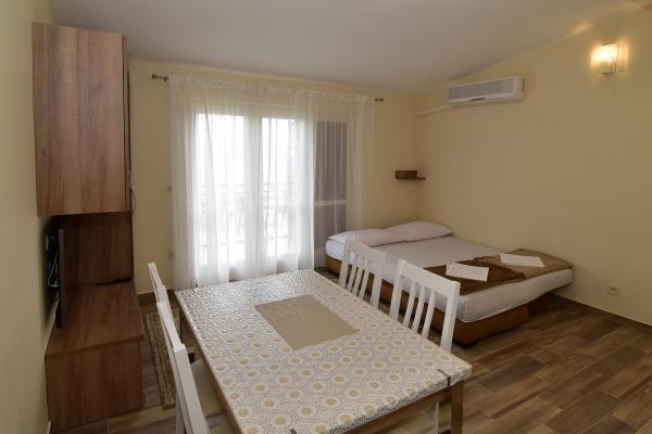Apartament znajduje się w centrum pierwszym rzędzie do morza w pobliżu długo piaszczyste plaże, sklepy, restauracje, urzędy pocztowe i inne treści, które mogą być interesujące dla wypoczynku. Składa się z sypialni, łazienki, mini-kuchnia, jadalnia, pokój z tarasem, który oferuje piękne widoki na morze, wyspy i piękno miejsca zamieszkania.
