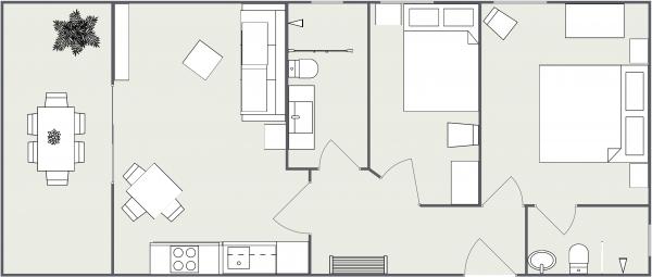 Apartament dla dwóch osób z dwoma dostawkami (46 m2)