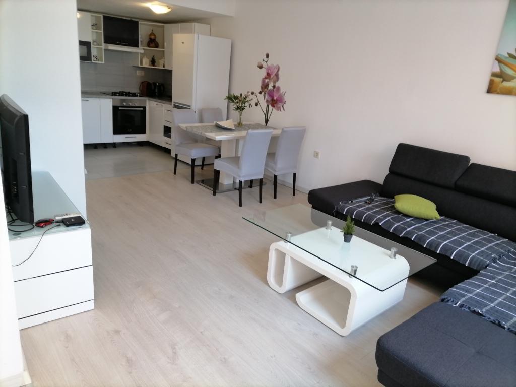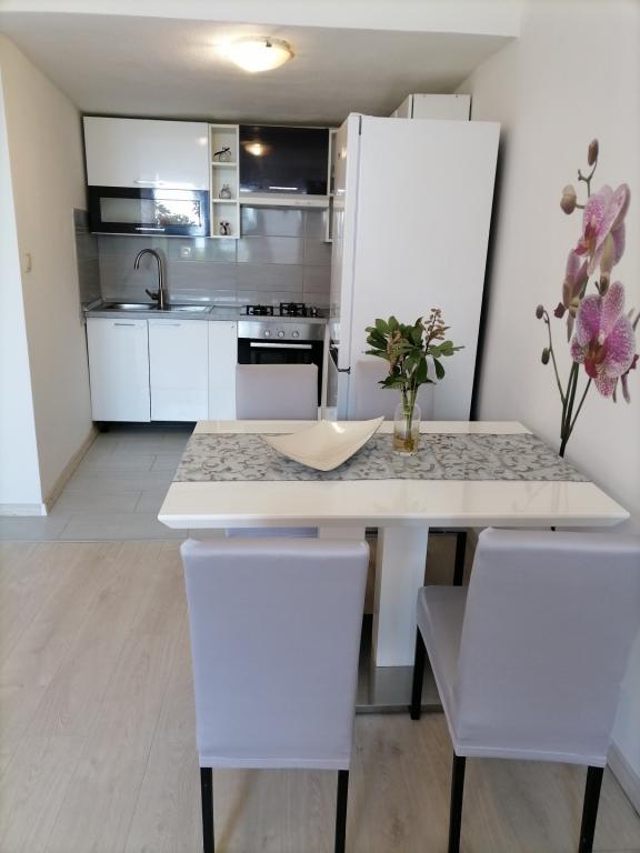 Apartament 10 minut spacerem od pięknego morza. Ostatnie piętro z pięknym widokiem na morze i aneksem kuchennym przydatnym na małe obiady. Mała i niezbyt wygodna łazienka, ale na kilka dni w Tucepi może być w porządku