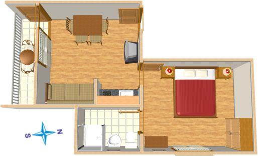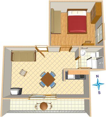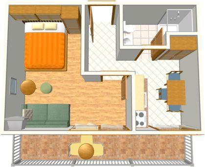 Apartament dla dwóch osób z trzema dostawkami (35 m2)