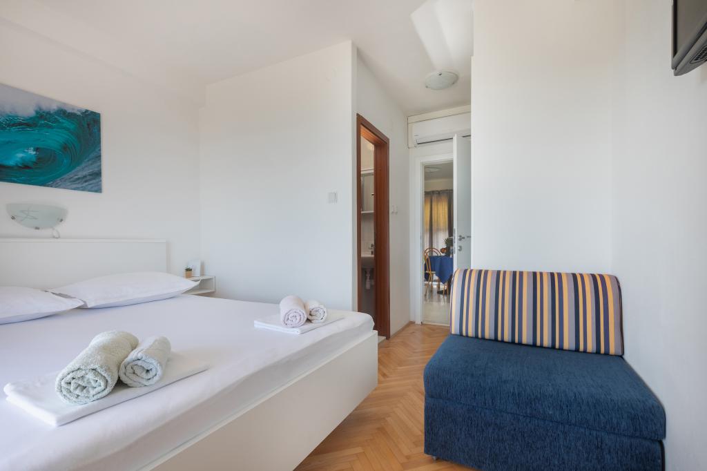 Sama przyjemność! Właściciele fantastyczni! Piękny widok tarasu, apartament przestronny i bardzo czysty, duży zestaw czystych ręczników i pościel wymieniana. Plaża czysta, piękna i długa ok. 3 km, jakieś 5 min drogi wąska ścieżką wśród drzew oliwnych. Są krajobrazowe widoki gdzie można robić piękne zdjęcia. Tucepi świetna lokalizacja - Makarska, Split, Omiś, Brela i Biokowo czyli sky walk. W trakcie pobytu właściciele ugościli nas przepyszną kolacją z domową rakiją i winem, cudo! Polecamy z całego serca i na pewno tu wrócimy. Dziękujemy!