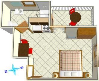 Apartament dla dwóch osób z dwoma dostawkami (35 m2)