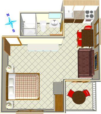 Studio dla dwóch osób z dwoma dostawkami (32 m2)