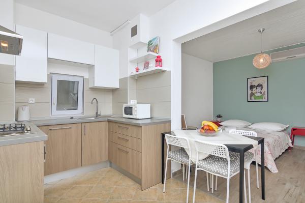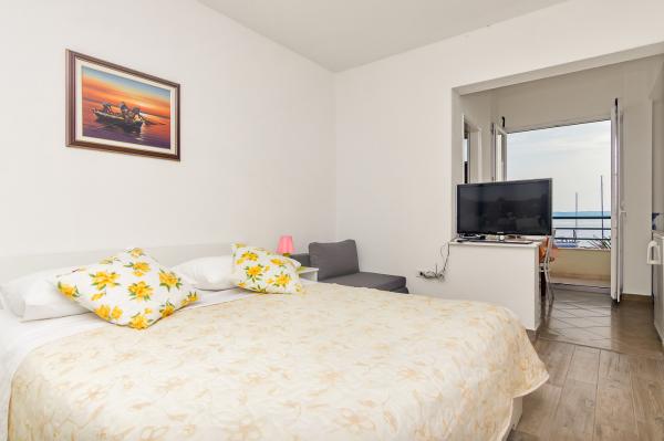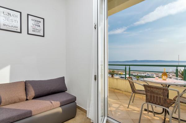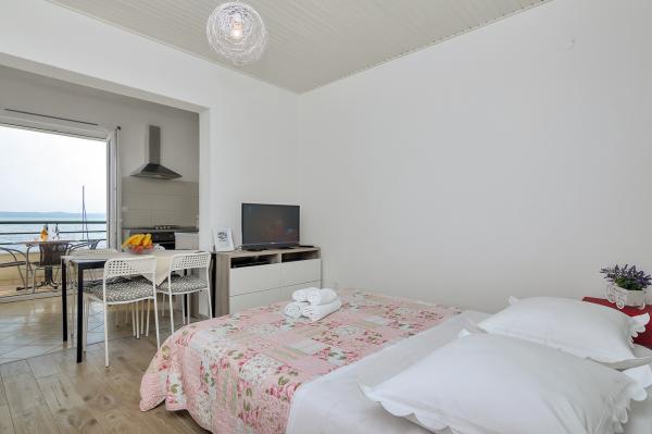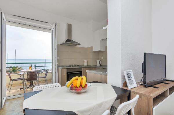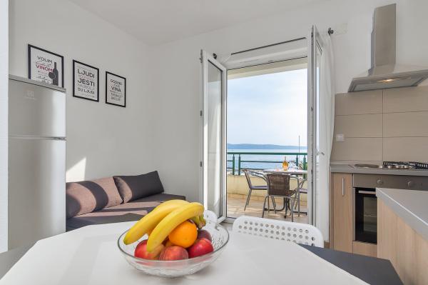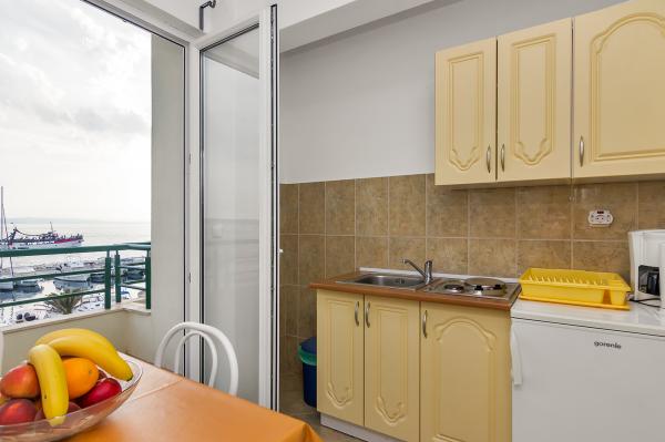 Kawalerki w centrum Tucepi, w pierwszym rzędzie. Tylko 50 metrów od plaży. Apartamenty są nowocześnie wyposażone, z widokiem na morze i przystań.