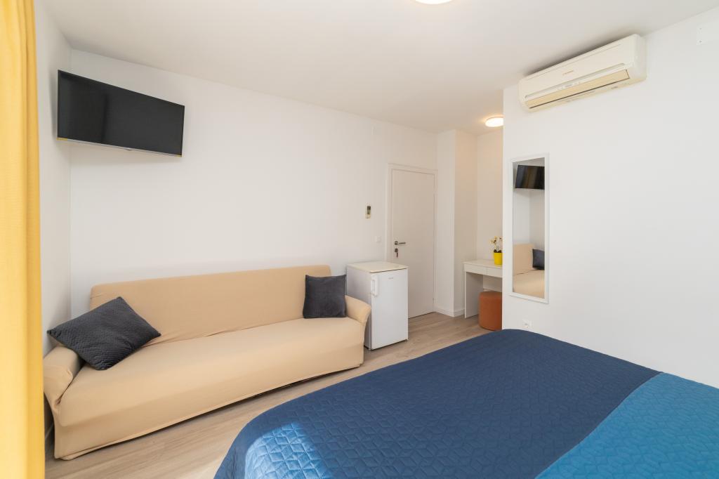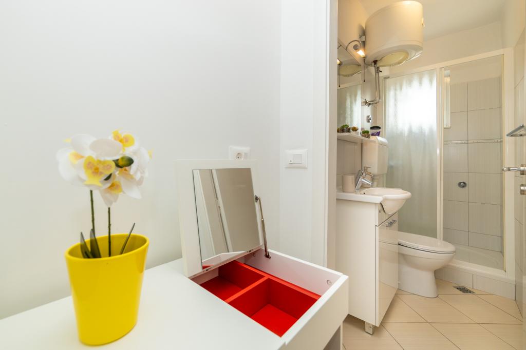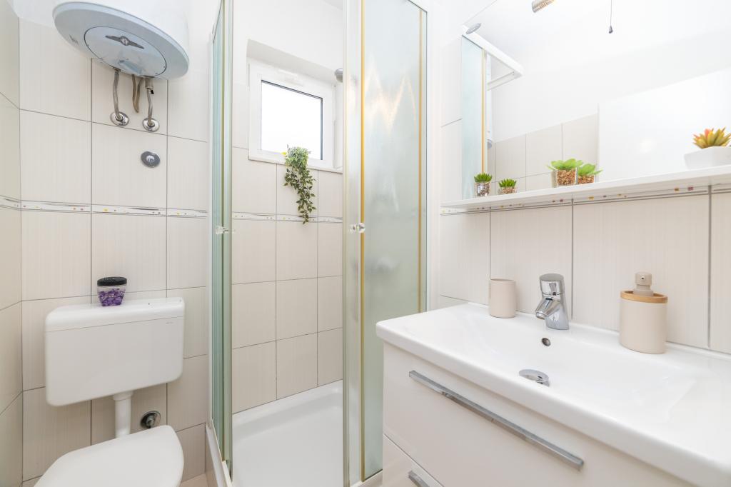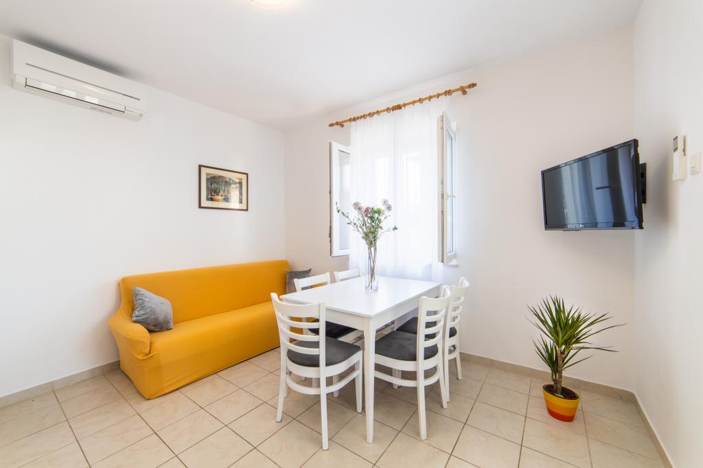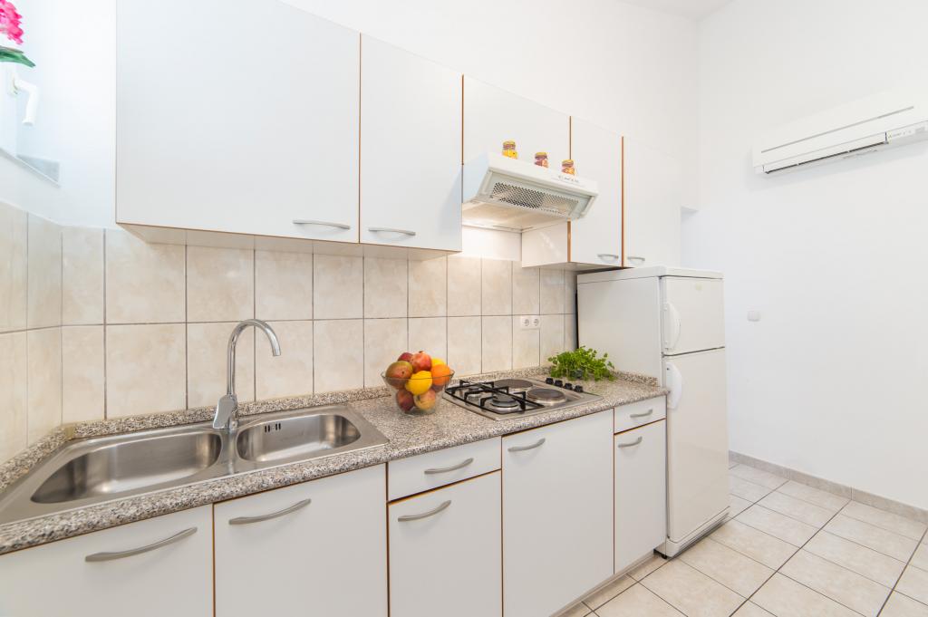 Posiadamy apartamenty w dwóch budynkach. Znajdujemy się 100 m od centrum Tučepi, przystani, apteki i lekarza. W promieniu 20-50 m znajdują się liczne restauracje, piekarnie, cukiernie, kawiarnie oraz supermarket. Parking znajduje się na podwórku między dwoma budynkami. Dom 1 znajduje się w pierwszym rzędzie nad morzem i posiada dwa apartamenty 2+1 z widokiem na morze i dużymi tarasami oraz dwa pokoje z łazienkami, lodówkami i balkonami dla dwóch osób plus dodatkowe łóżko. Znajdują się one na pierwszym piętrze budynku. Wszystkie pokoje i apartamenty są klimatyzowane. Dom 2 znajduje się za domem 1 i znajduje się 20 m od morza. Oferujemy duże apartamenty dla 4-5 osób z osobnymi wejściami, dwiema oddzielnymi sypialniami, świeżo wyremontowaną łazienką i pokojem dziennym. Wszystkie pokoje w apartamentach są klimatyzowane i wyposażone w telewizję satelitarną i internet. Przed nimi duży taras z widokiem na morze. Apartamenty są przestronne i mają powierzchnię 50-60 m2.