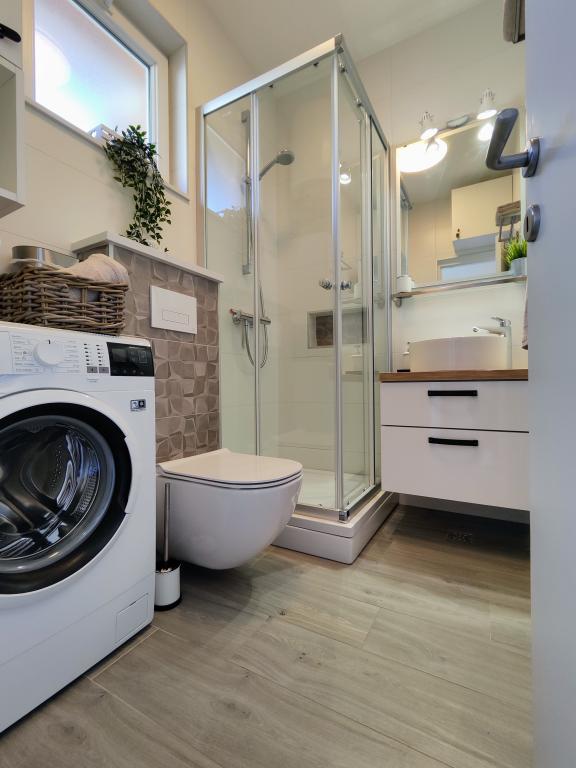Po przybyciu do mieszkania byliśmy właścicielami mieszkania z bardzo dobrym przyjęciem, a my wszystko dość indeksy. Mieszkanie jest bardzo ładnie urządzone i czyste. Mieszkanie miało zmywarkę i pralkę. Mieszkanie nie tylko podstawowe rzeczy, ale masz tabletki dla zmywarki, papier toaletowy, ręczniki papierowe, proszek do prania, ..... Mieszkanie naprawdę nam się podobało.