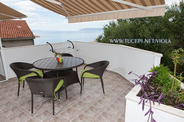 Całkowicie i nowocześnie wyposażone apartamenty w spokojnej części Tucepi, 300 m od morza z widokiem na morze. Odległość od centrum miasta 10 minut spacerem, plaża 5 minut spacerem, sporty wodne i boisko sportowe Slatina 10 minut. Każdy apartament ma własny hol wejściowy i dzieli wspólne podwórko z parkingiem. Goście mogą korzystać z dodatkowej opłaty; parking, grill i serwis Wi-Fi.