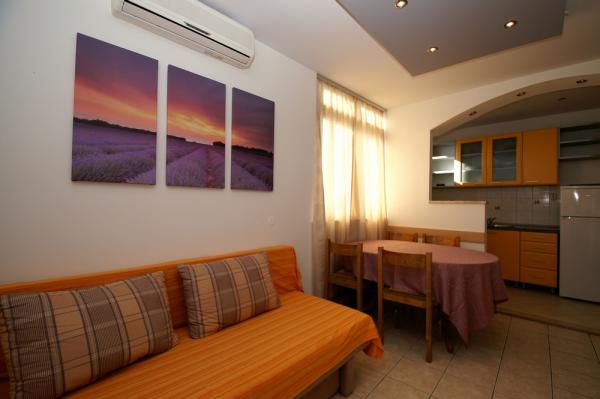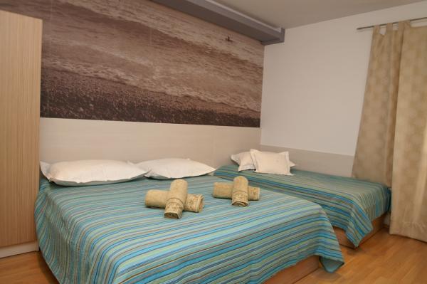 Nasze apartamenty znajdują się w Tučepi, na drugim i trzecim piętrze domu rodzinnego, w pobliżu plaży (100 m), sklepów (50 m), boisk sportowych (300 m), licznych restauracji i centrum miasta (800 m). Wszystkie apartamenty wyposażone są w klimatyzację, telewizor, bezpłatne łącze WiFi, ręczniki i pościel. Odbywają się regularnie. Większe apartamenty (apartament 5 i ap 6) wyposażone są w zmywarkę. Parking znajduje się w garażu, każdy gość ma swój własny klucz do garażu. Do dyspozycji gości pralka (bezpłatnie). Plaża w pobliżu domu jest zagospodarowana, piaszczysta. Wzdłuż całej plaży rosną sosny - naturalny cień. Promenada wzdłuż plaży jest zamknięta dla ruchu. Przy dłuższym pobycie (powyżej 7 dni) lub w celu dopasowania się do istniejących terminów udzielamy rabatu.