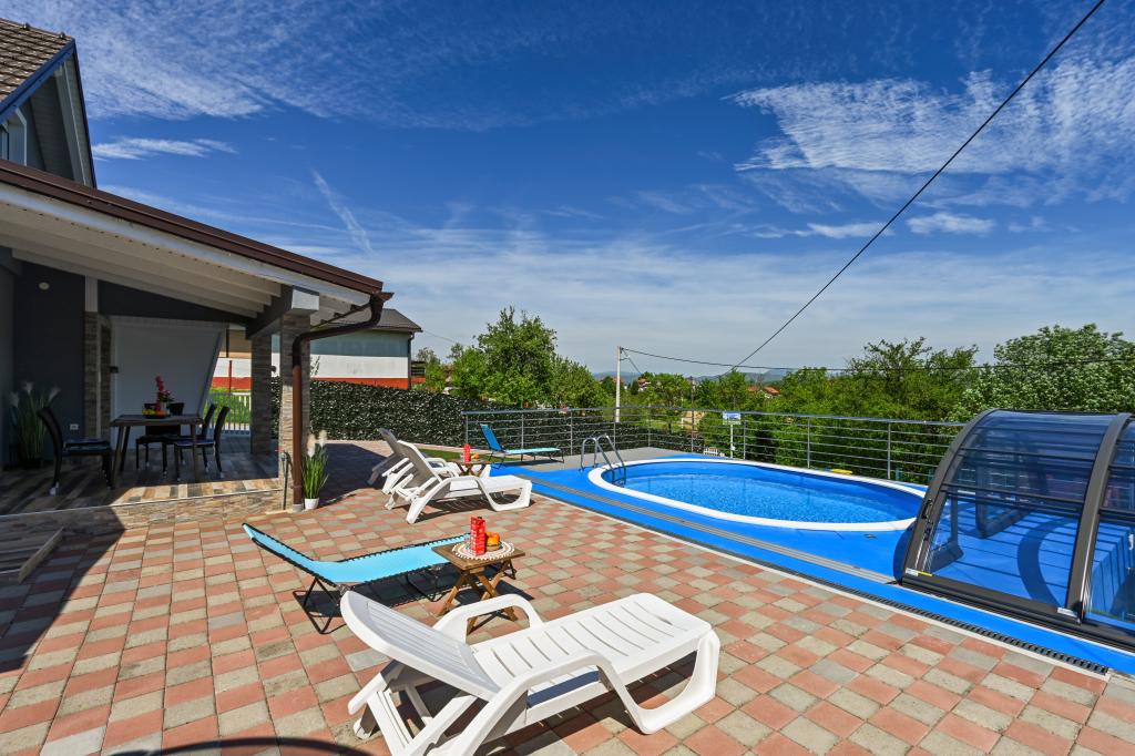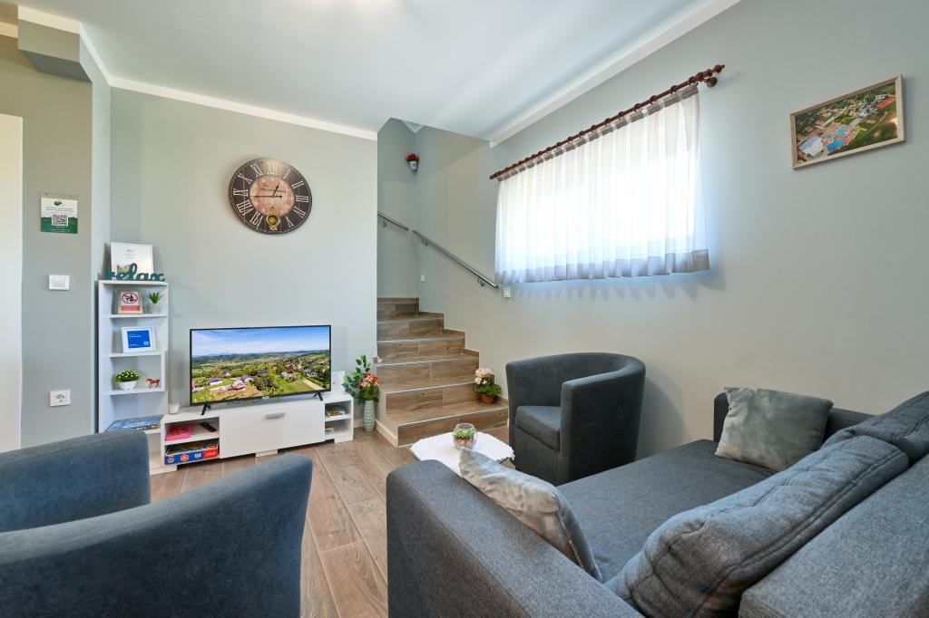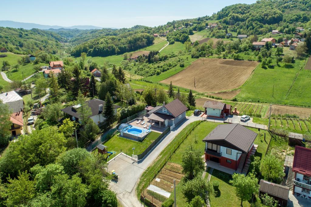 Dom wakacyjny - Cvetkova Hiža znajduje się w miejscowości Sveti Križ w gminie Tuhelj. To tylko 1 km od Terma Tuhelj, 12 km od uzdrowiska Krapin i około 44 km od Zagrzebia. Terme Tuhelj leży u samego źródła wody termalnej i leczniczego błota i jest najpopularniejszym ośrodkiem uzdrowiskowym w kontynentalnej Chorwacji. Częścią kompleksu jest barokowy zamek Mihanović. W bezpośrednim sąsiedztwie chaty Cvetkovej znajduje się: Zelenjak - gdzie poeta Antun Mihanović śpiewał wersety chorwackiego hymnu narodowego w 1835 roku. Sto lat później Bracia Chorwackiego Smoka wznieśli pomnik na cześć chorwackiego hymnu narodowego, jedyny taki na świecie. Kumrovec - gdzie znajduje się Muzeum "Staro selo" (Ethno-selo Kumrovec), unikalny skansen z zachowanymi oryginalnymi domami wiejskimi z przełomu XIX i XX wieku. Klanjec - położony jest na wzgórzu u podnóża ruin średniowiecznego Cesargradu, na samej granicy chorwacko-słoweńskiej, nad rzeką Sutla. Veliki Tabor - to twierdza w północno-zachodniej Chorwacji, w Hrvatsko zagorje w pobliżu miasta Desinić, 8 km