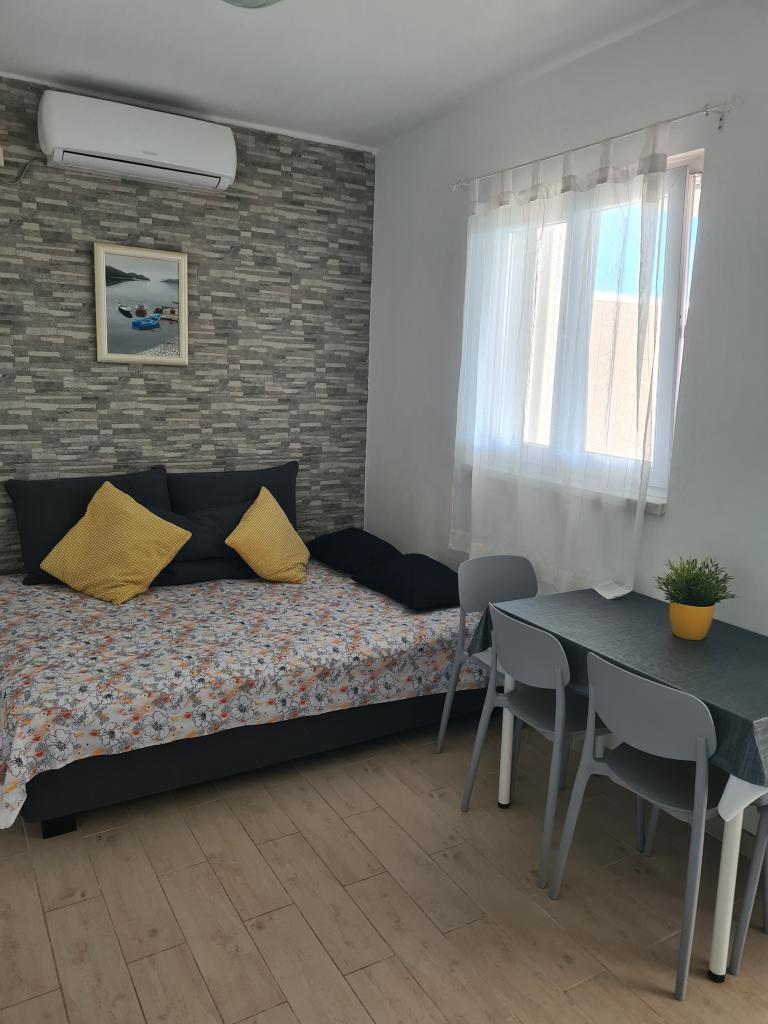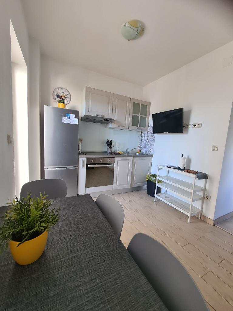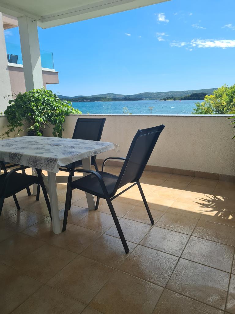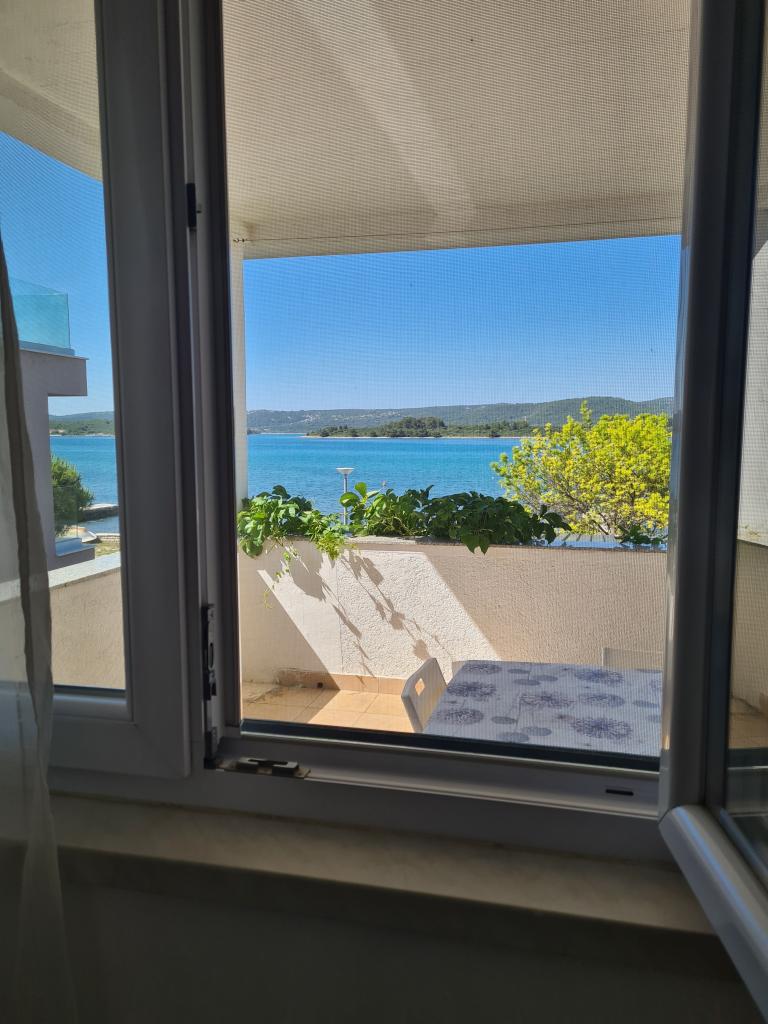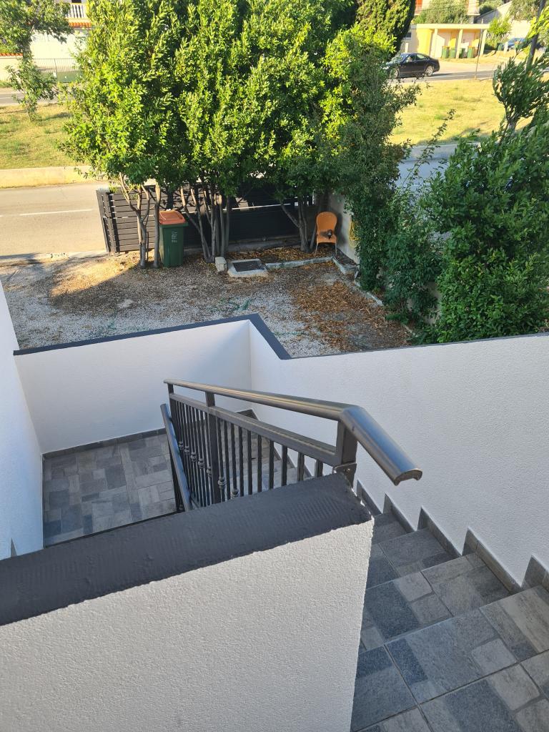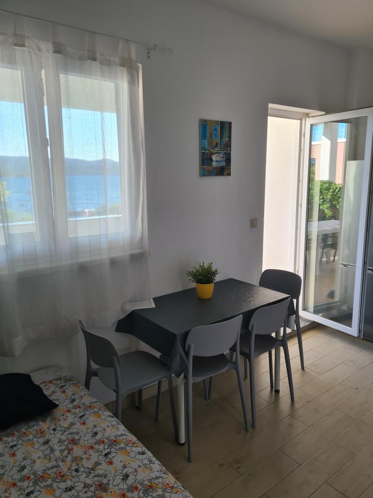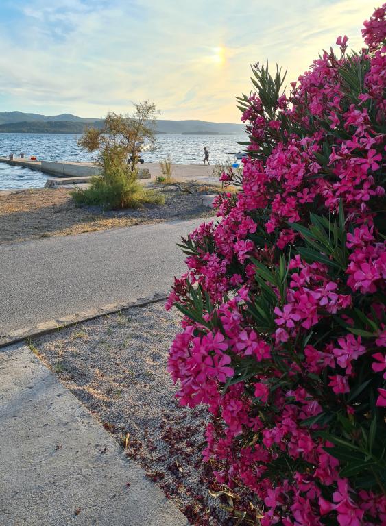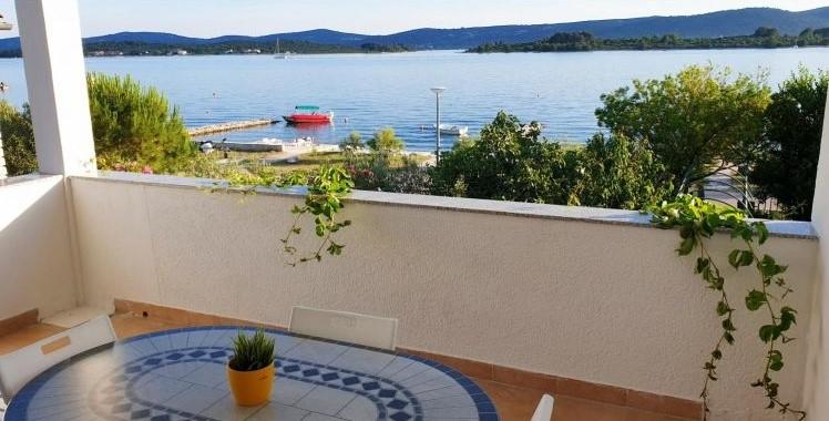 Apartament, pierwszy rząd do morza, na pierwszym piętrze domu. Prywatne wejście. Taras z widokiem na morze. Odpowiednie dla rodzin z dziećmi i osób starszych. Pięć minut spacerem do centrum miasta.