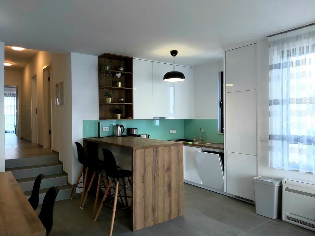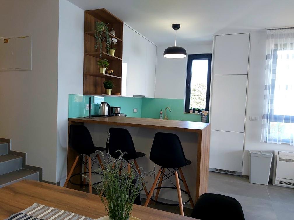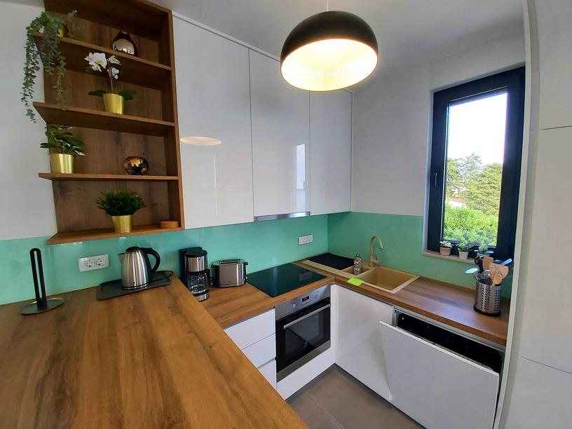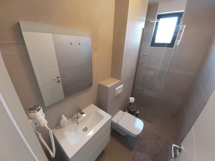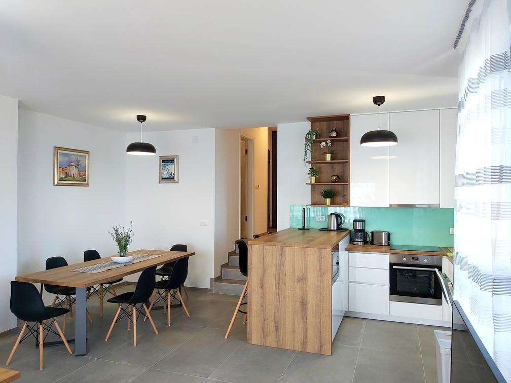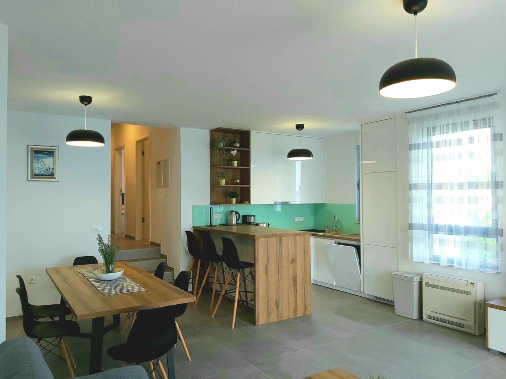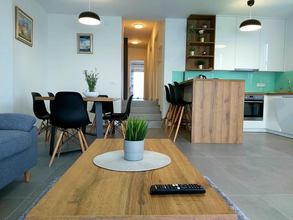 Ten nowoczesny, zalany słońcem apartament oferuje spokojną, mieszkalną atmosferę, z szybkim i łatwym dostępem do Turanj, Biogradu na Moru i Zadaru. Podziwiaj ostry, współczesny krajobraz przestrzeni mieszkalnej na otwartym planie i ciesz się spokojną okolicą z uroczego tarasu. Mieszkanie znajduje się na drugim piętrze, o łącznej powierzchni 81,30 m2. Składa się z nowoczesnej kuchni w pełni wyposażonej w sprzęt AGD, jadalni, salonu, przedpokoju, dwóch łazienek z prysznicami oraz trzech sypialni z podwójnymi łóżkami, zabudowanymi szafami i sejfem. Z tarasu o powierzchni 17,20 m2 roztacza się widok na kanał Zadar i plażę znajdującą się bezpośrednio pod apartamentem. Pokój północny posiada balkon o powierzchni 5,40 m2. Obok mieszkania znajduje się w pełni ogrodzone miejsce parkingowe pokryte pergolą.