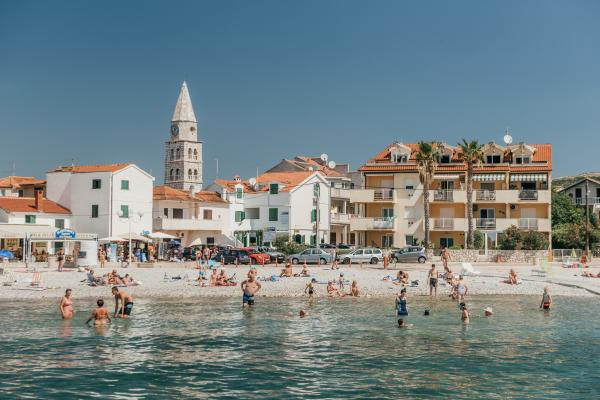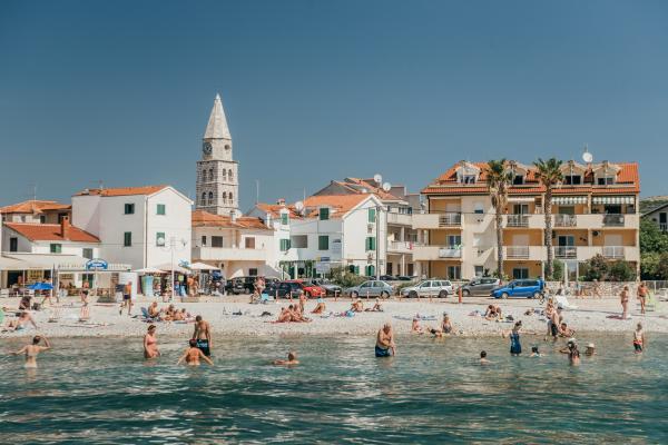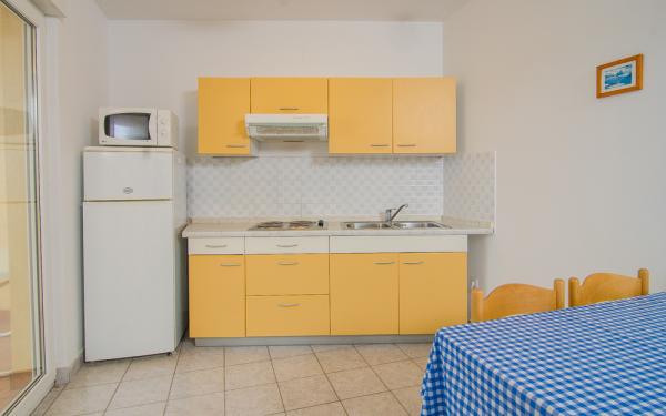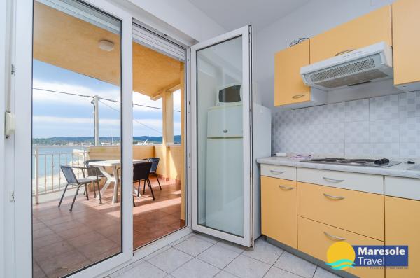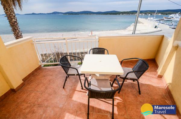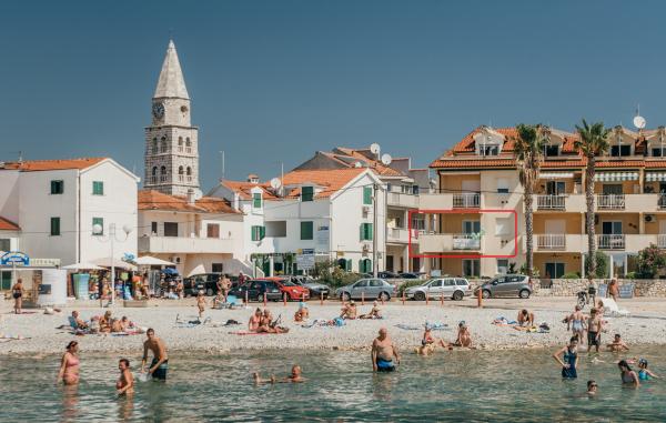 Nowy budynek z 14 apartamentów w centrum miasta, w pierwszej linii od plaży. Mieszkanie, na pierwszym piętrze, składa się z dwuosobowej sypialni, sypialnia z łóżkiem piętrowym, pokój dzienny z rozkładaną kanapą dla dwóch osób, kuchnia i jadalnia, balkon z widokiem na morze.