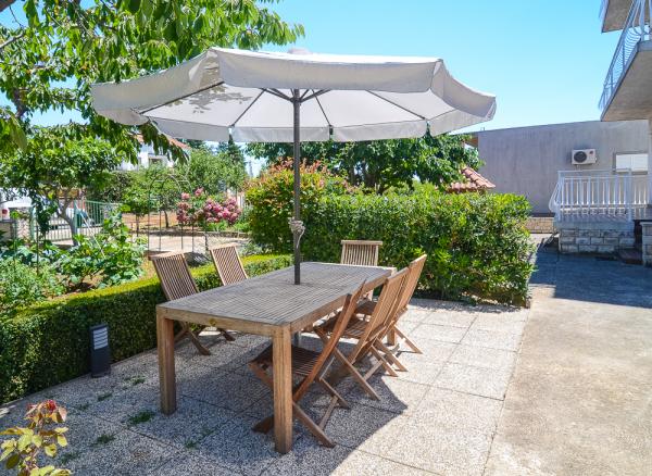 Całkowicie odnowiony dom z dwóch dużych mieszkań dla 6 osób: dwupokojowe mieszkanie A4 2 znajduje się na pierwszym piętrze trzy-pokojowe mieszkanie A6 znajduje się na drugim piętrze. Na podłodze w salonie i sypialni parkiet. Apartamenty są świeżo pomalowane i meble i wyposażenie są nowoczesne. Teren składa się z dwóch części: przedniej, wejścia do parku i Grill i plecach z ogrodem, parking i kuchnia ze stołem i krzesłami na grilla i odpoczynek. Dziedziniec ozdobiony dyskretnym oświetleniem w nocy. Dom jest około 100 m od restauracji, supermarketów i morza. Odległość od plaży 150 m od centrum, 400 m. Ośrodki w pobliżu St. Filip i Jakov 1 km, Biograd 5 km, 20 km od Zadaru
