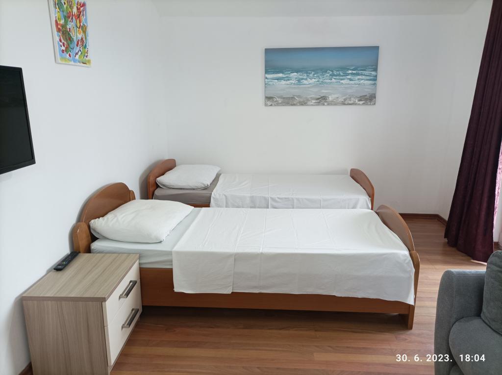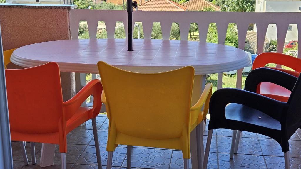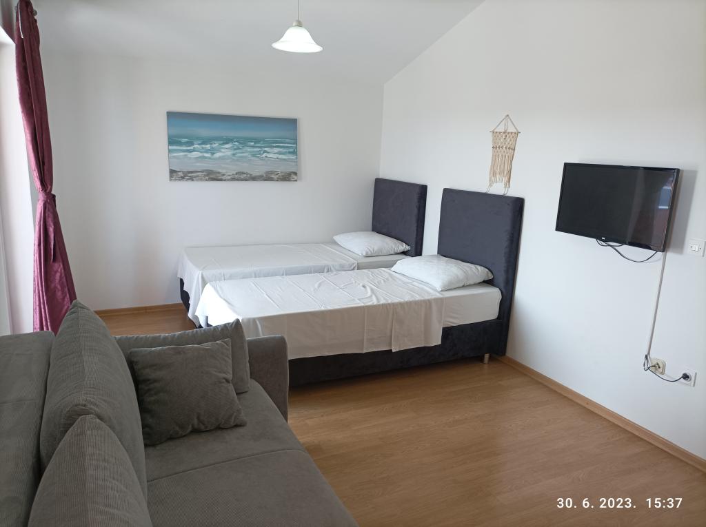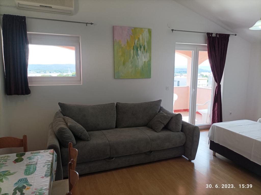W małym, spokojnym miejscu, niedaleko miasta Biograd nad morzem, znajduje się 5 umeblowanych apartamentów + parking. Każdy apartament posiada prywatny taras z widokiem na morze. W pobliżu budynku znajdują się sklepy, kawiarnie, restauracje, plaże i miejsca warte odwiedzenia. Wszystkie obiekty znajdują się w odległości ok. 5 minut spacerem od budynku.