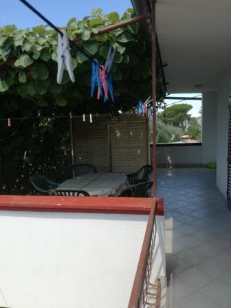 Apartamenty znajdują się w drugim rzędzie od morza na końcu ulicy, z dala od zgiełku i tłumów. Plaża jest kamienista i znajduje się 70 m od domu. W przedniej części plaży jest boje do cumowania łodzi. Na dziedzińcu przed budynkiem miejsca parkingowe. W ogrodzie znajduje się również grill, huśtawki i zjeżdżalnia dla djecu.Apartmani znajdują się na pierwszym piętrze, a przed nimi znajduje się duży taras, który jest pokryty naturalnym odcieniu (kiwi). Oba apartamenty składają się z: sypialni (2 1), wc, przedpokoju, kuchni, pokoju, w którym znajduje się rozkładana sofa dla 2 osób żyjących. Apartamenty wyposażone są w klimatyzację i telewizję satelitarną.