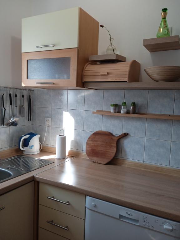 Mieszkanie znajduje się na piętrze domu. Posiada dwie sypialnie z podwójnymi łóżkami. Każdy pokój posiada balkon. Również w salonie apartamentu, w kuchni i innym balkon. Na parterze znajduje się kuchnia letnia i taras i kuchnia czarny z kominkiem, który jest używany razem z gospodarzami. Na podwórku jest parking. Mieszkanie ma osobne wejście. Darmowe Wi-Fi.