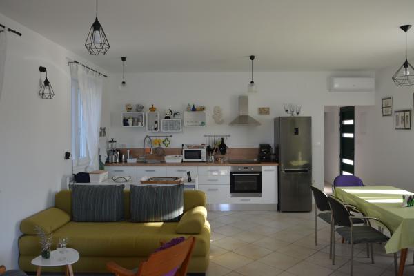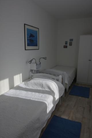 Apartament znajduje się w zatoce Batalaza w Ugljan, Wyspa Ugljan, na parterze przy morzu, z zadaszonym tarasem. Składa się z sypialni z podwójnym łóżkiem, pokoju z dwoma łóżkami pojedynczymi, przestronny salon, gdzie znajduje się wygodna kanapa, która może służyć jako łóżko dla dwóch osób, w pełni wyposażona kuchnia, łazienka z prysznicem i dodatkową toaletą połączone z pralką. Na życzenie można dodać łóżeczko. Jest wyposażone w TV, Wi-Fi i klimatyzację i posiada miejsce parkingowe. Minimalny pobyt 7 Przewidywany czas przybycia w sobotę od 16:00 i wyjazd w sobotę przed 10:00 godziny.