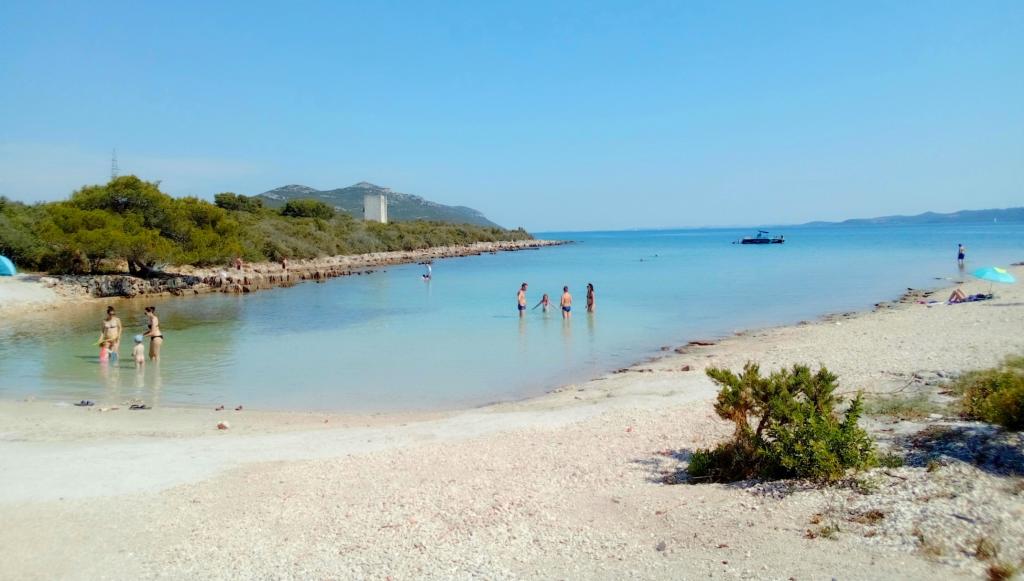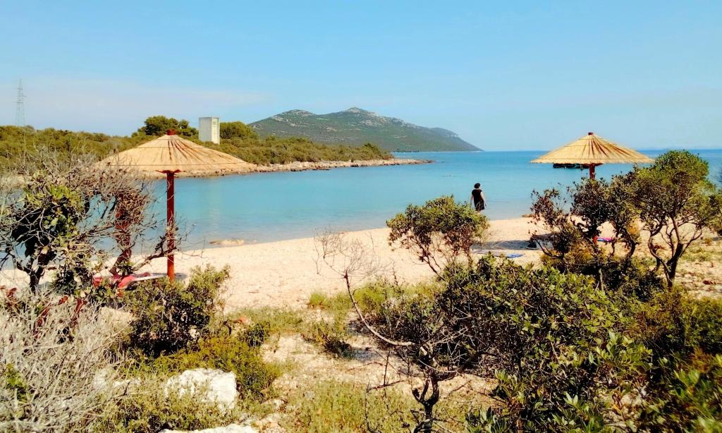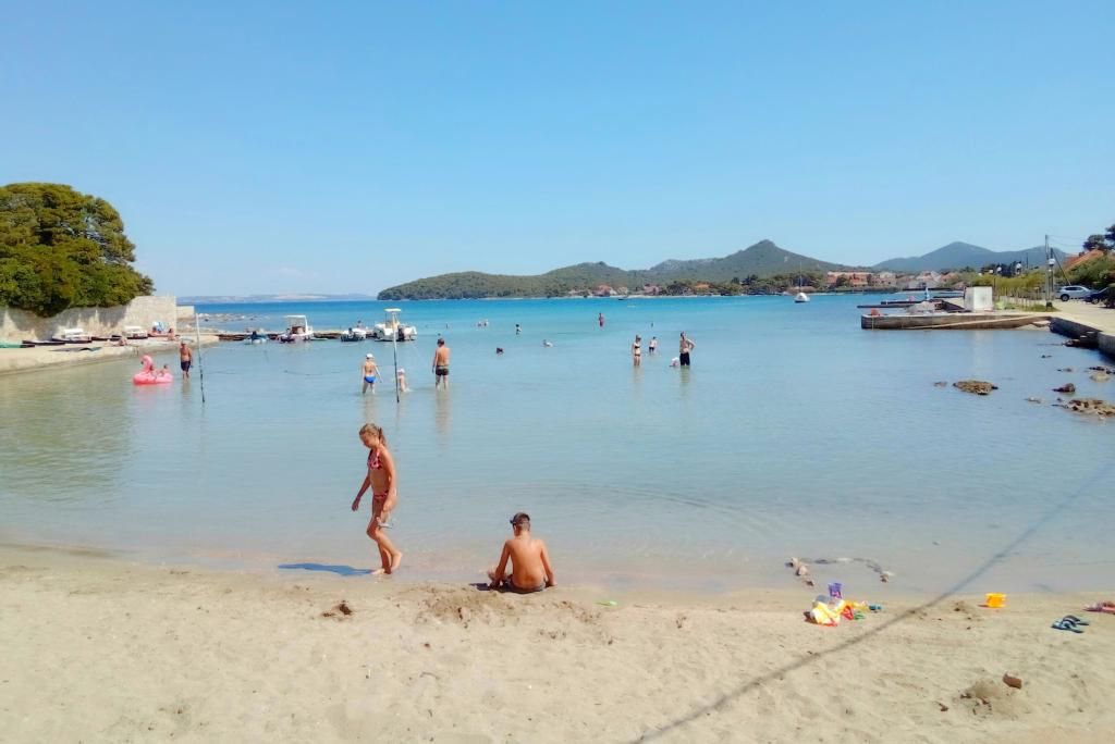 Mieszkanie znajduje się na pierwszym piętrze rodzinnego domu w spokojnej części miasta Ugljan, w otoczeniu zieleni. W pobliżu znajduje się gaj oliwny, wygodny do spacerów, relaksu i przebywania na łonie natury. Plaża 8 min. pieszo. Do wszystkich plaż można dojechać samochodem. Jest kuchnia i salon/sypialnia z dużym wygodnym łóżkiem 160 cm dla 2 osób; sypialnia z łóżkiem 180 cm; z obu pokoi wyjście na balkon; mały pokój jednoosobowy z łóżkiem 90 cm dla 1 osoby, z którego jest wyjście na mniejszy balkon; Posiada dodatkowy piekarnik przenośny i elektryczny. grilluj, dzięki czemu możesz gotować i piec na świeżym powietrzu, na balkonie; umywalka, prysznic 90 cm, toaleta. Dom otoczony jest ładnym ogrodem, w którym można nocować. Zwierzęta są dozwolone i preferowane. Odpowiednie miejsce dla miłośników przyrody, romantyków, miłośników sportu i rodzin lubiących spokojne wakacje. Blisko słynnego miasta Zadar, które zdecydowanie warto odwiedzić. Prom i statek pasażerski kursują codziennie, niemal co godzinę, podróż trwa około 20 minut. Możliwe wycieczki z Ugljan to Kornati i Dugi otok. Witamy u nas!