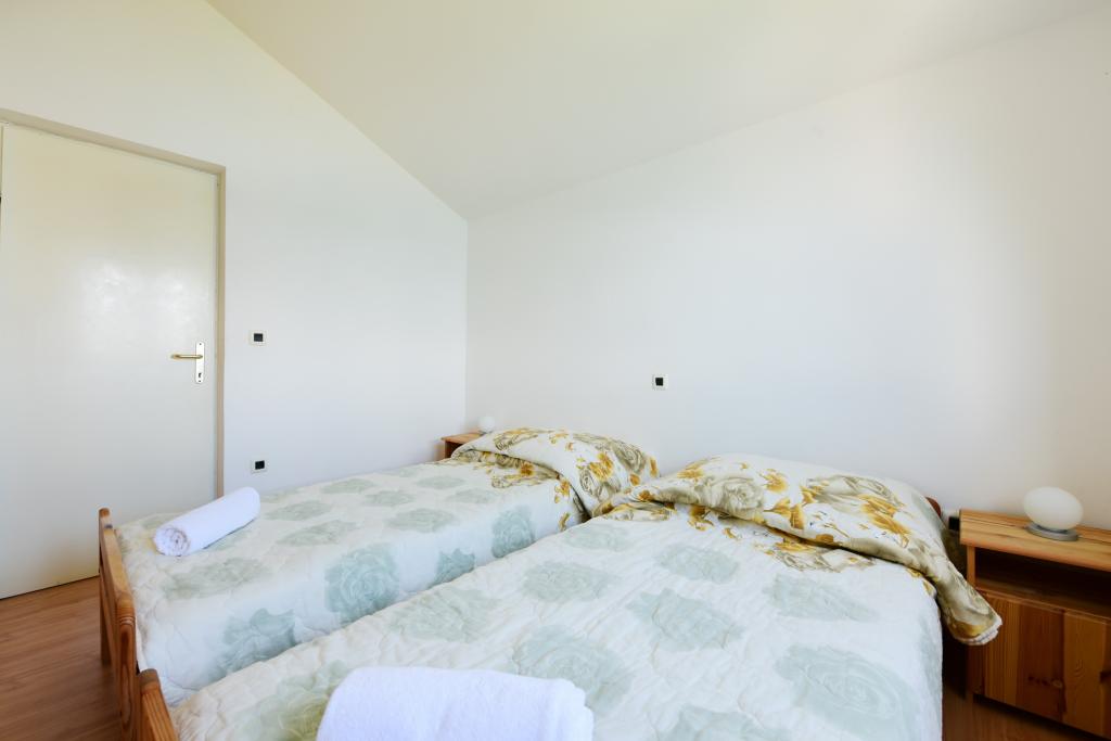 Apartamenty położone są tuż nad morzem, w spokojnej i przyjaznej wiejskiej okolicy. Każdy apartament posiada duży taras z widokiem na morze. Otacza je zagospodarowany śródziemnomorski ogród, idealny do zabaw dla dzieci. W ogrodzie dostępne są leżaki i wspólny grill. W każdym apartamencie znajdują się 2 łazienki. Niedaleko, 5 minut spacerem, znajduje się centrum, gdzie znajduje się targ z produktami z lokalnych gospodarstw, a także sklepy i restauracje. Pomoc medyczna w nagłych wypadkach jest dostępna 24 godziny na dobę, 7 dni w tygodniu. Plaża bezpośrednio przed apartamentem jest kamienista, a w niedużej odległości znajduje się kilka plaż, na których jest również plaża piaszczysta. Dojazd samochodem: autostrada prowadzi bezpośrednio do portu promowego Gaženica. Następnie wsiądziesz na prom do Preko. Latem kolejki są częste, kursują co najmniej co godzinę. Z portu promowego Preko należy skorzystać z głównej drogi wyspy, aby dotrzeć do oddalonego o 10 km miasta Ugljan. Przylot samolotem: Z lotniska w Zadarze autobusem lub taksówką w 15 minut. Docierasz bezpośrednio do portu promowego Gaženica, gdzie wsiadasz na prom do Preko.