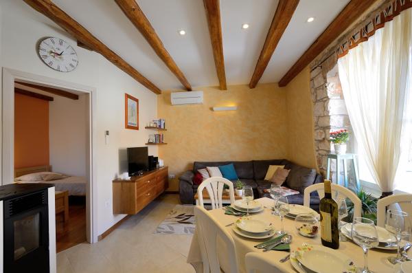 Apartament Zorko Umag (70 m2, A4 1) znajduje się w centrum Umag, w spokojnej części miasta, zaledwie 7 minut spacerem od lokalnej plaży. Apartament z dwiema sypialniami mieści się na dwóch piętrach starej kamienicy w Istrii. Dom został całkowicie odnowiony w nowoczesnym i ciepłym stylu śródziemnomorskim, a jego kamienne ściany zapewniają przyjemną naturalną świeżość w upalne letnie miesiące. Jest idealny dla rodziny z dwójką lub trojgiem dzieci, dwiema parami lub grupą przyjaciół i może pomieścić maksymalnie 5 osób. Mieszkanie jest idealne na aktywne wakacje zorientowane na pobliską plażę, obiekty miejskie lub zwiedzanie półwyspu Istria.