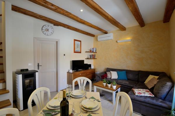 Opłata jest wliczone w cenę.Z bocznej drogi miejskiej zamienia się w podwórko wspólne z sąsiadami. Jest prywatny parking na dwa samochody i stół z ławkami. Zewnętrzne schody z małym balkonem prowadzą na pierwsze piętro, gdzie znajduje się kuchnia z salonem, jedna sypialnia z podwójnym łóżkiem i wspólna toaleta. Wewnętrzne schody prowadzą na wysokie poddasze, gdzie znajduje się przestronna łazienka i druga sypialnia z podwójnym łóżkiem. W tym pokoju można oddzielić łóżka, a dzieci to uwielbiają! Pościel i ręczniki są zapewnione. Udogodnienia obejmują wifi, telewizję satelitarną, klimatyzację na każdym piętrze. Kuchnia jest w pełni wyposażona (kuchenka elektryczna, piekarnik, lodówka z zamrażarką, zmywarka do naczyń, naczynia).