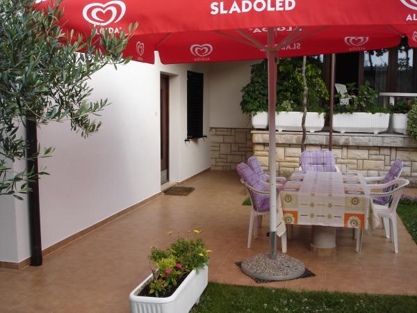 Apartament w spokojnej dzielnicy miasta Umag znajduje się zaledwie 50 metrów od morza i 5 minut od centrum miasta. Mieszkanie ma dwa pokoje, kuchnia i łazienka. Może być stosowany z dużym tarasem w ogrodzie i stolik na zewnątrz.