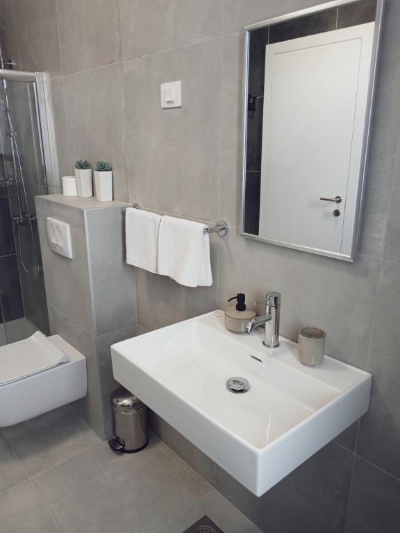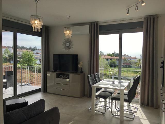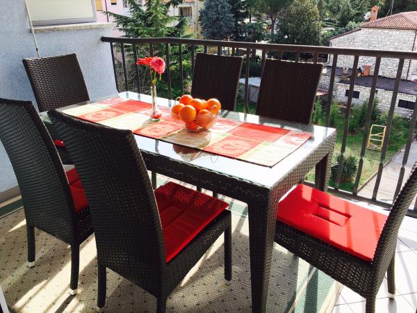 Apartamenty Mirella 4 znajdują się w nowo wybudowanej rezydencji Lavender z widokiem na morze i pięknym widokiem na zachód słońca. Do morza i pięknej piaszczystej plaży jest tylko 150m. Sklepy, piekarnia i restauracje w odległości 200m. Do centrum Umag 3 km. Wzdłuż morza znajduje się promenada aż do centrum Umag, a istnieje możliwość transportu pociągiem turystycznym. Apartamenty są klimatyzowane i w pełni wyposażone we wszystkie urządzenia. Łazienka z prysznicem z masażem, pralką, suszarką do włosów, żelazkiem. Kuchnia ze zmywarką, mikrofalówką, ekspresem do kawy, czajnikiem, dużą lodówką z zamrażarką i wszystkim innym, aby goście czuli się jak w domu. Dostępny jest bezpłatny dostęp do Internetu i parking strzeżony. Cena obejmuje korzystanie z basenu, leżaków, prysznica, dwumiejscowego, stołu i krzeseł w zadaszonej części tarasu przy basenie. Dziękujemy za wybór apartamentów Mirella, mam nadzieję, że w zamian spełnimy Państwa życzenia podczas pobytu w naszych apartamentach. Naszym celem jest Twoja satysfakcja i rekomendacja. Drodzy goście, witamy w Apartments Mirella!